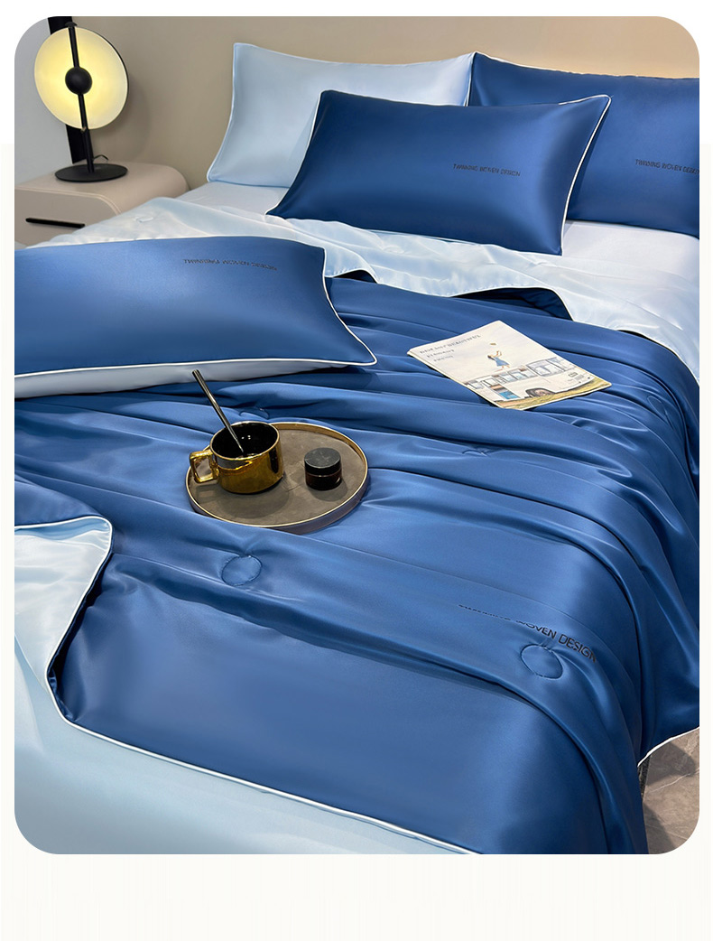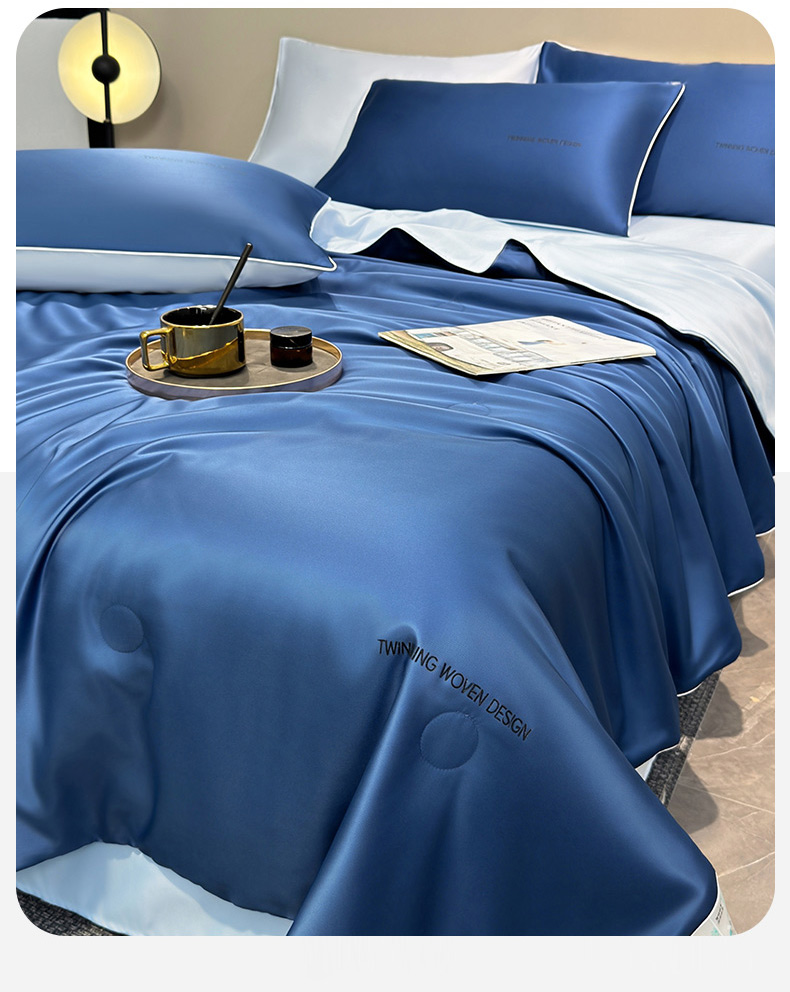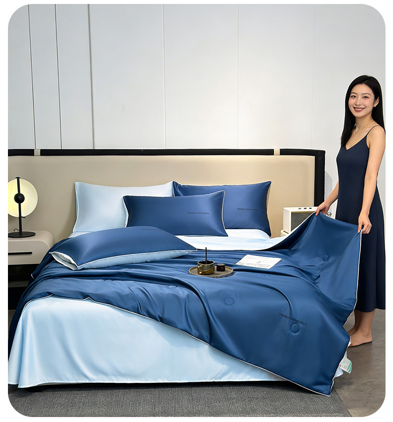 • 91家纺网 家纺一手货源 找家纺 招财星家纺 2026新款可水洗真丝被夏天空调被单人夏凉被冰丝夏被被子双人薄被(带质检报告买家秀) 丝语-深海蓝+水蓝