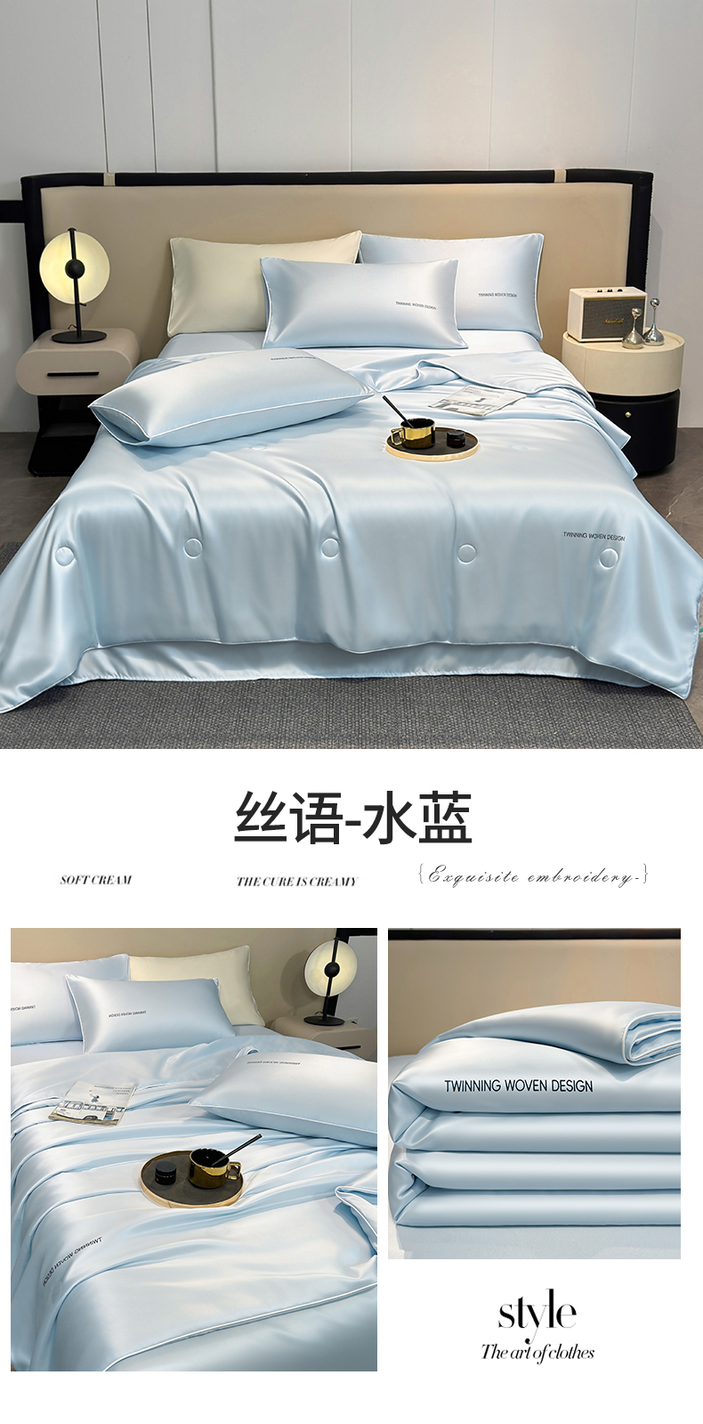 • 91家纺网 家纺一手货源 找家纺 (总)招财星家纺 2026新款可水洗真丝被夏天空调被单人夏凉被冰丝夏被被子双人薄被(带质检报告买家秀),丝语-粉玉+银灰,丝语-湖蓝,丝语-奶白,丝语-奶咖+暖棕,丝语-青果绿+银灰,丝语-深海蓝+水蓝,丝语-水蓝,丝语-水蓝+银灰