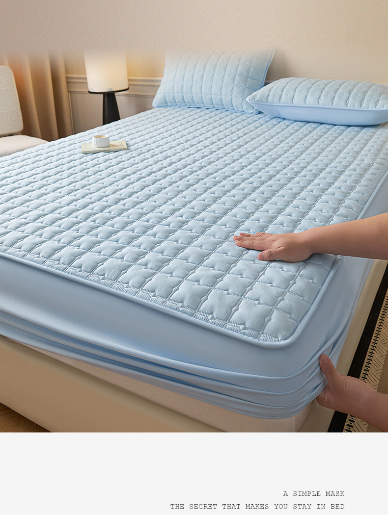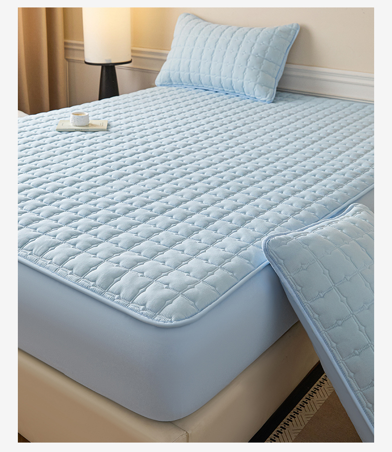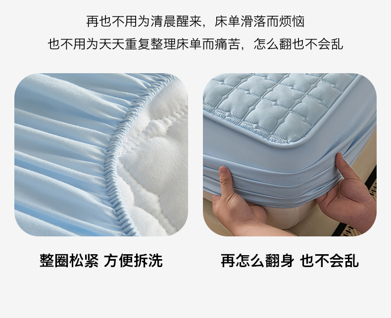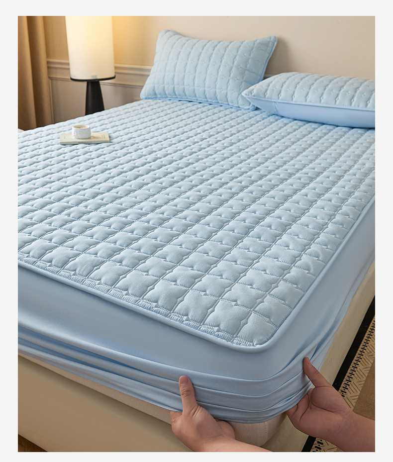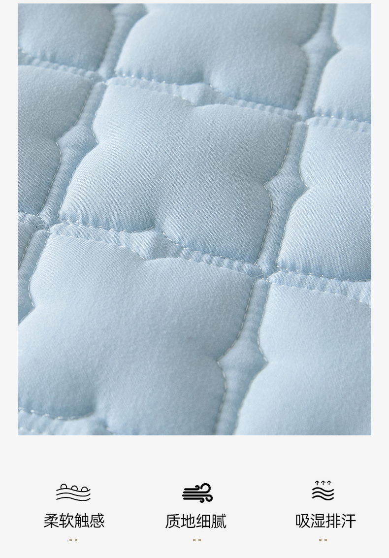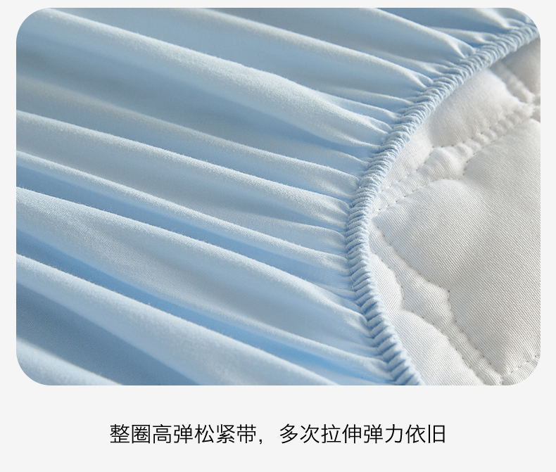 • 91家纺网 家纺一手货源 找家纺 优眠坊 2026新款夹棉床笠/防水床笠   床笠三件套 格趣-浅蓝-不防水款