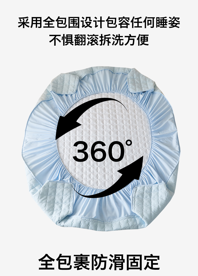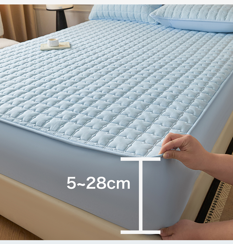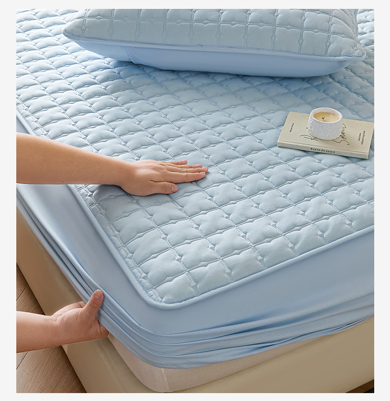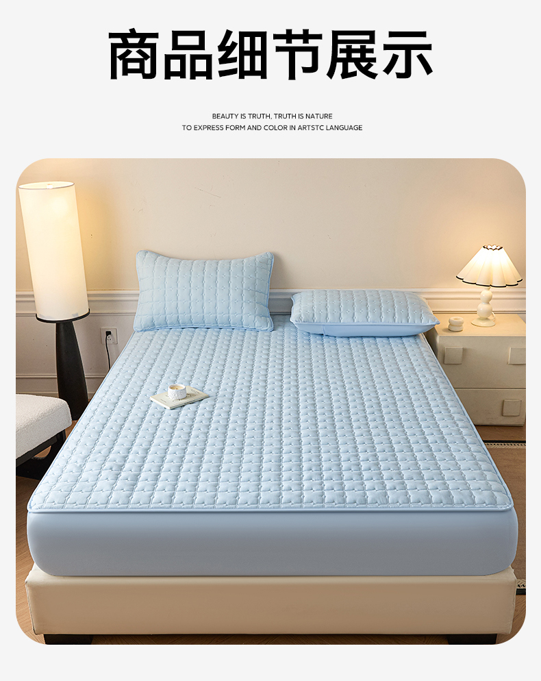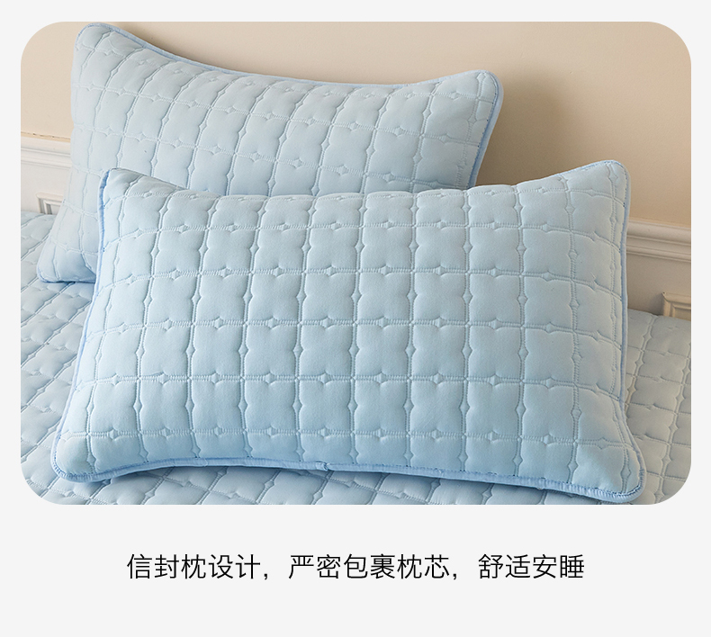 • 91家纺网 家纺一手货源 找家纺 优眠坊 2026新款夹棉床笠/防水床笠   床笠三件套 格趣-浅蓝-不防水款