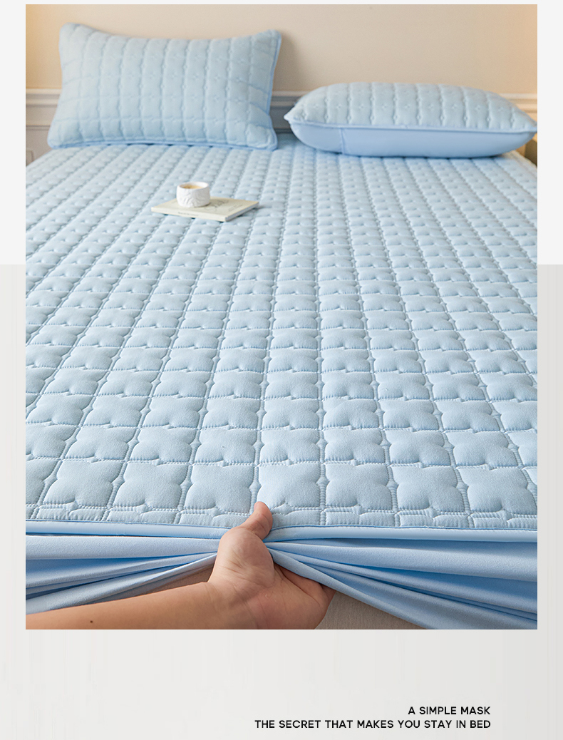 优眠坊 2026新款夹棉床笠/防水床笠 床笠三件套 格趣-浅蓝-不防水款