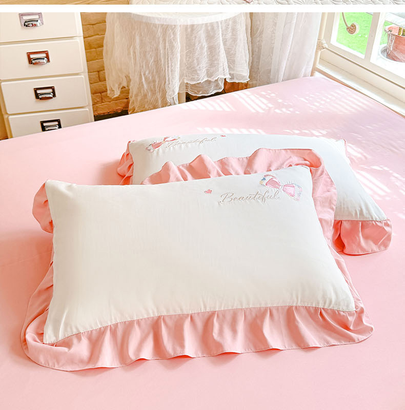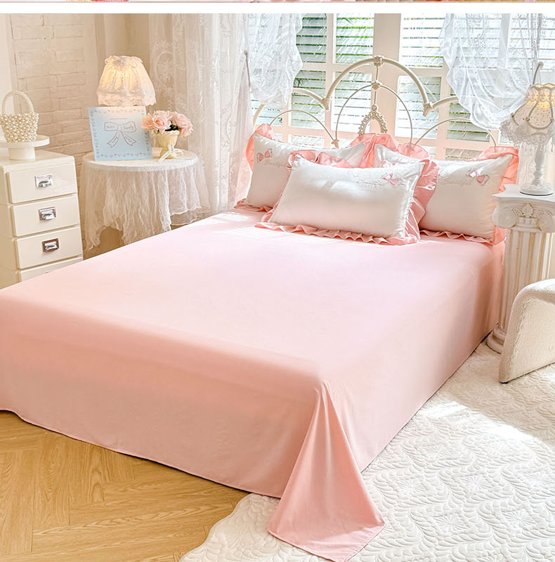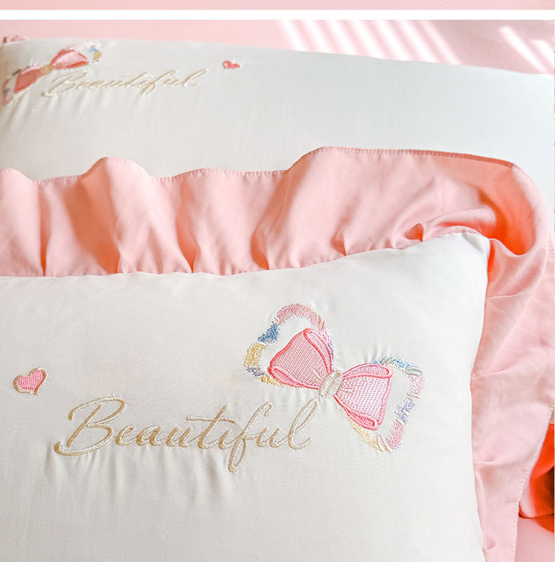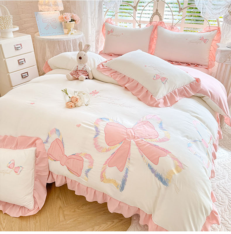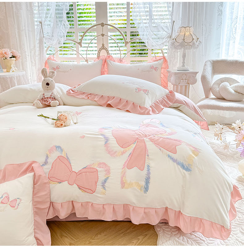 绒棉世家 2026新款水洗棉贴布绣专版四件套 邂逅蝴蝶结粉