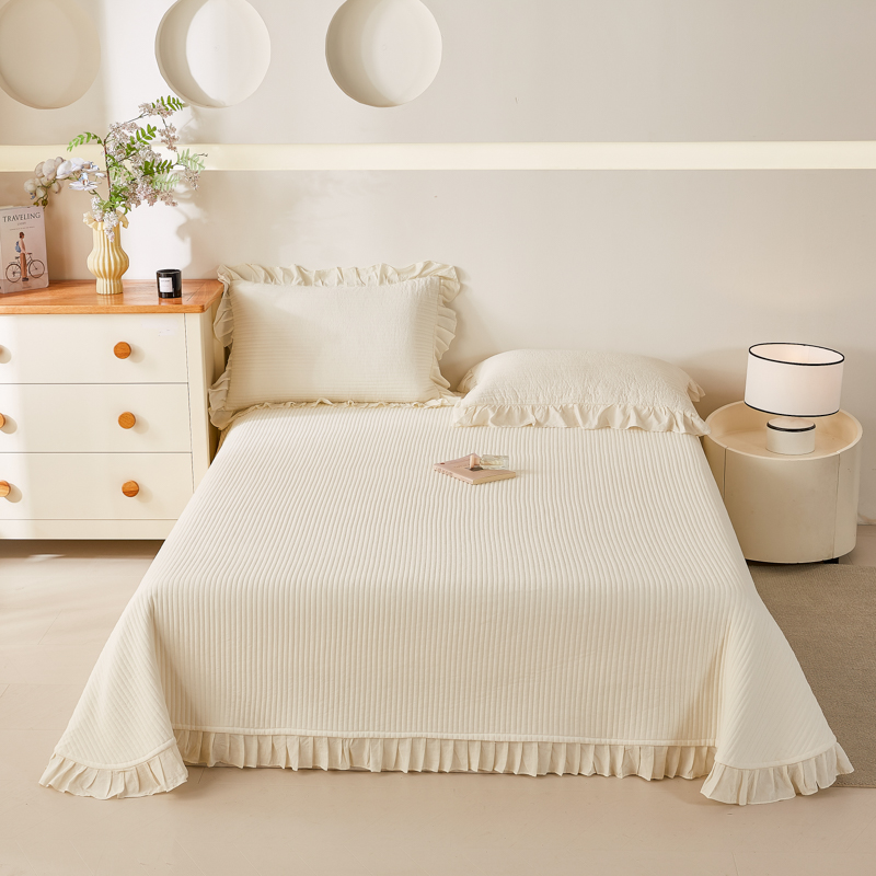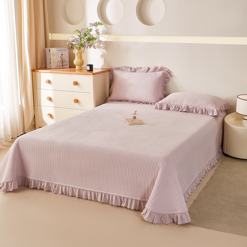 玖玖爱家纺 2026新款高端A类夹棉水洗母婴级莱赛尔天丝床盖裙边凉席三件套 迷迭紫