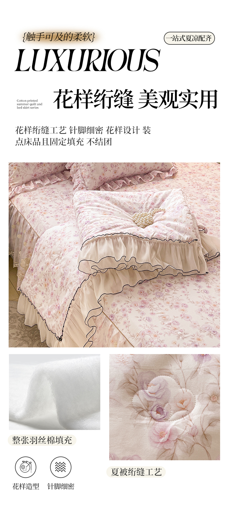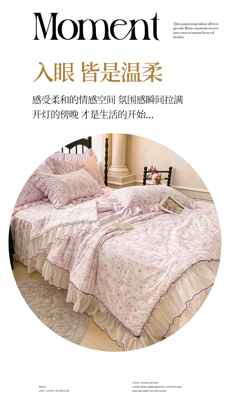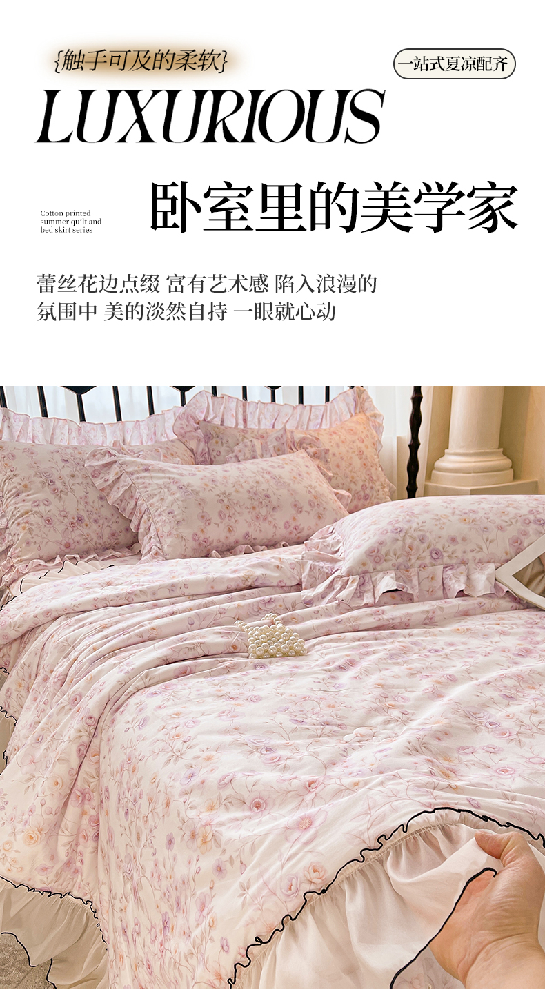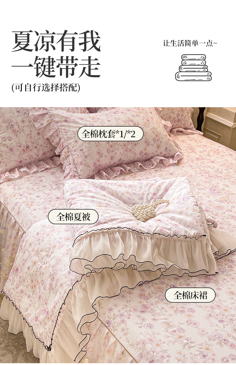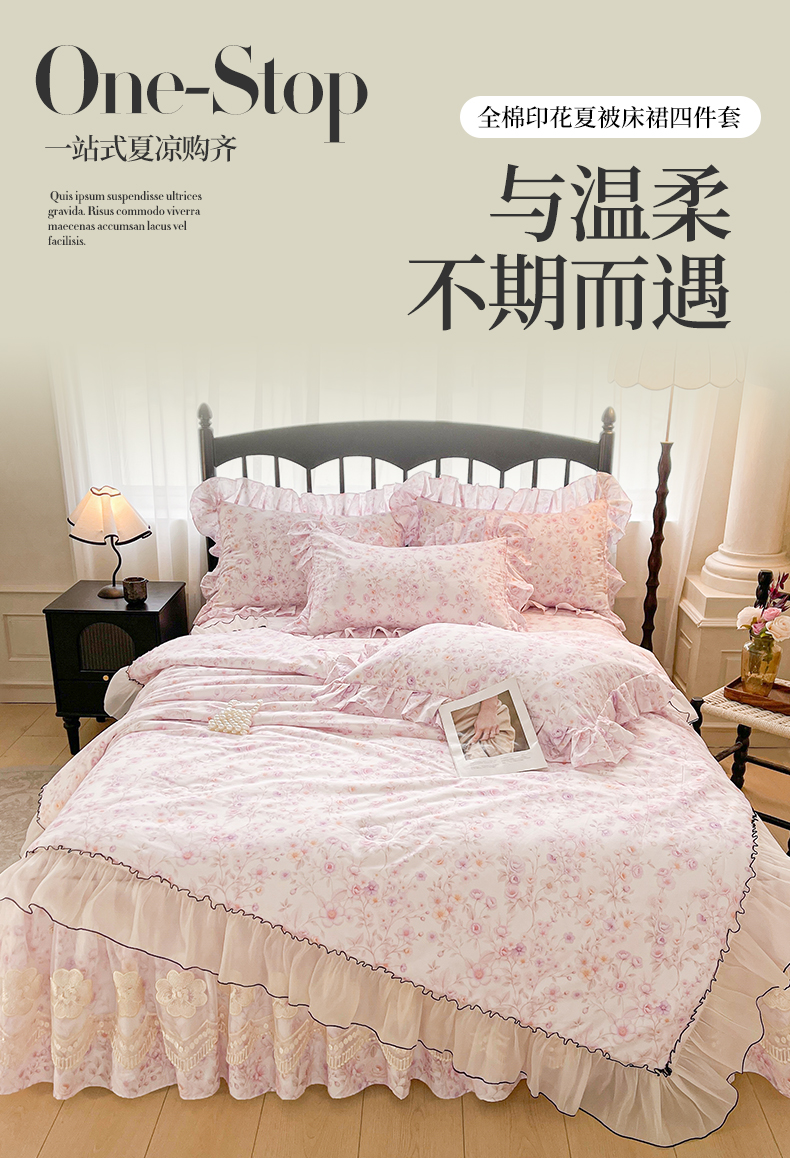 宜凡家纺 2026新款全棉数码印花夏被床裙四件套②号系列 恬静