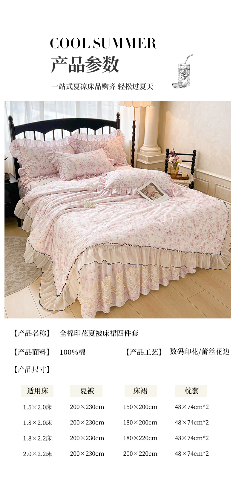 1.5*2.0床裙2.0*2.3夏被款四件套