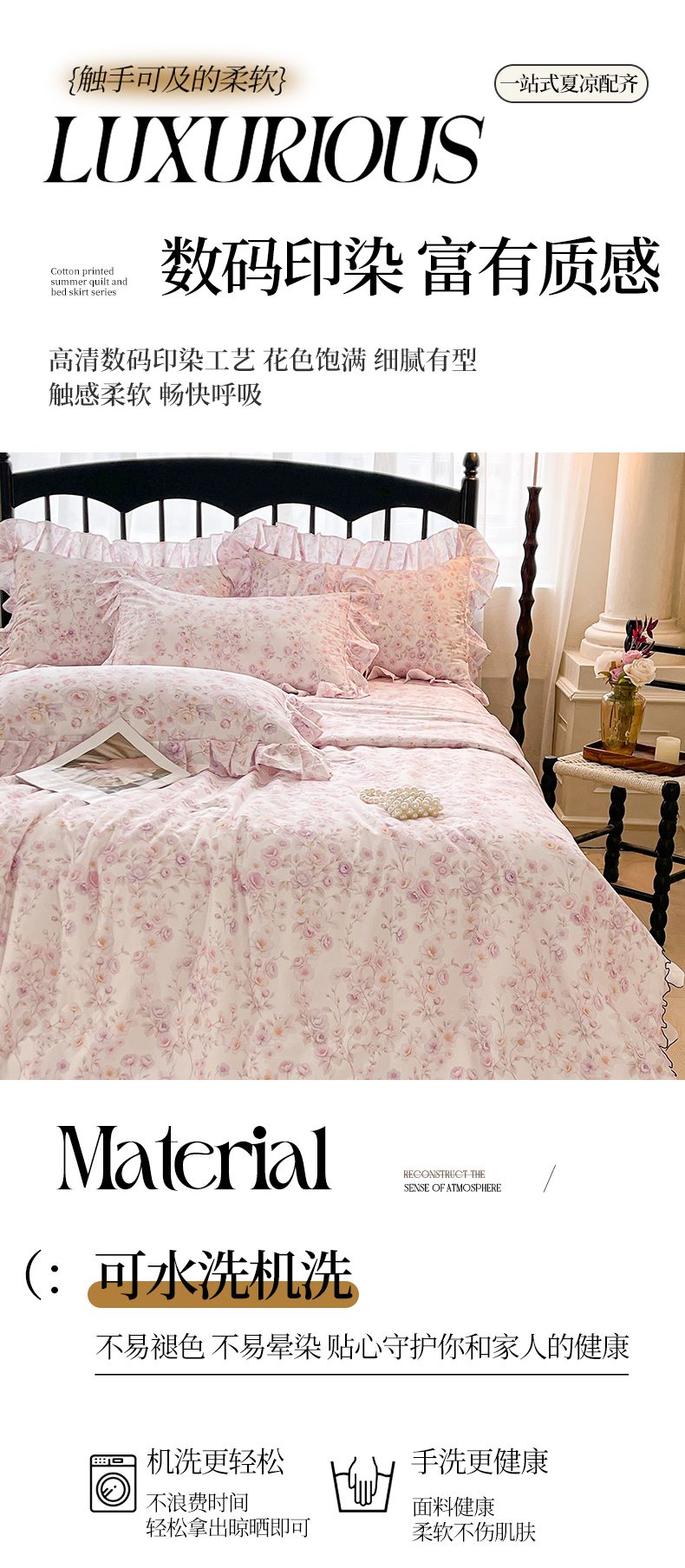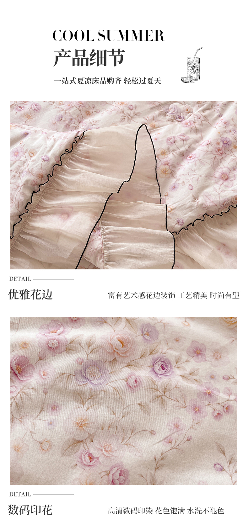商品名称:宜凡家纺 2026新款全棉数码印花夏被床裙四件套②号系列 恬静