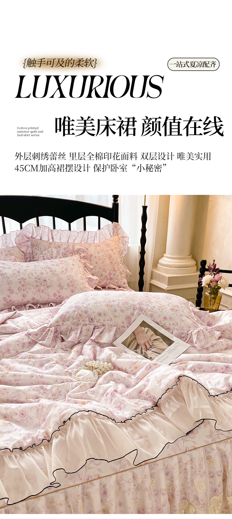 (总)宜凡家纺 2025新款全棉数码印花床裙三件套系列一,静若幽兰,浮云织梦,梦幻花园,陌上花开