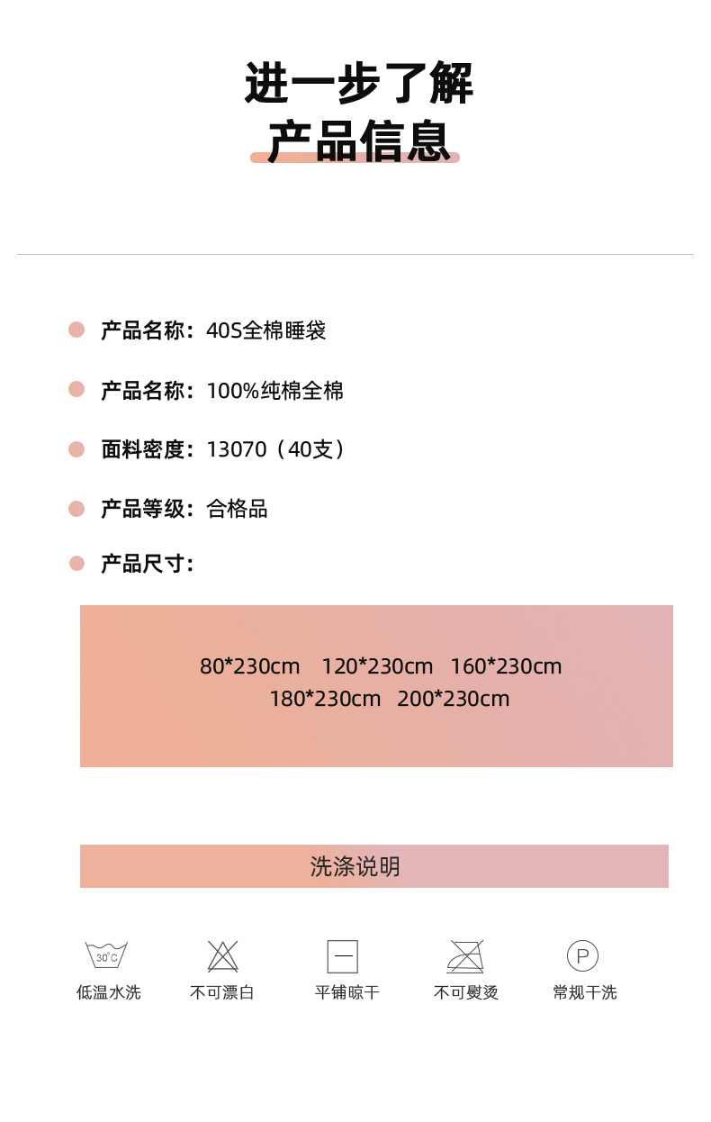 商品名称:(总)简宜家居(朝初家纺) 2026新款40支纯棉全棉12868旅行睡袋 酒店隔脏便携