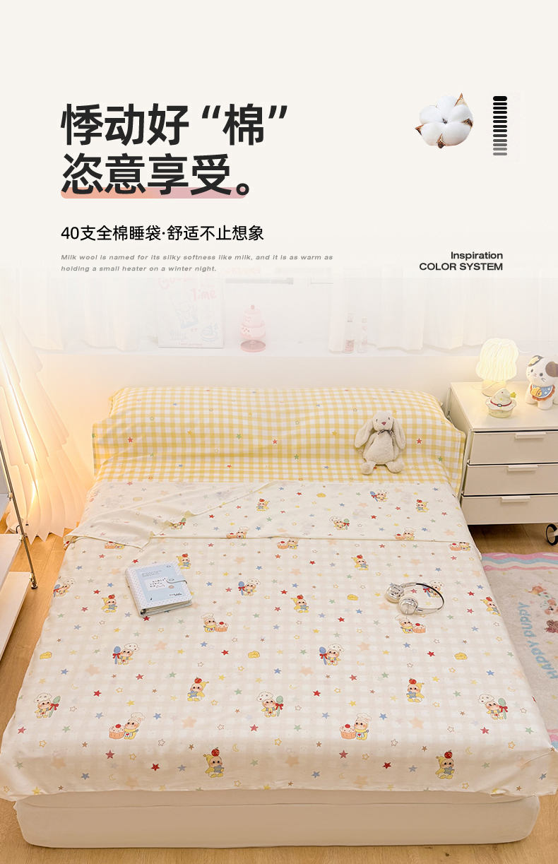 (总)简宜家居(朝初家纺) 2026新款40支纯棉全棉12868旅行睡袋 酒店隔脏便携