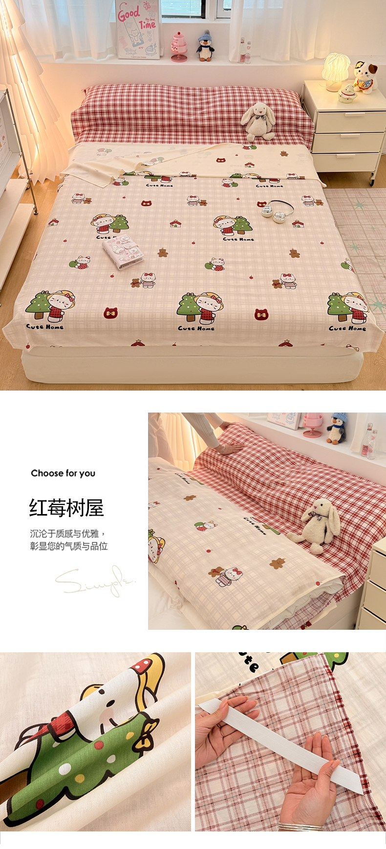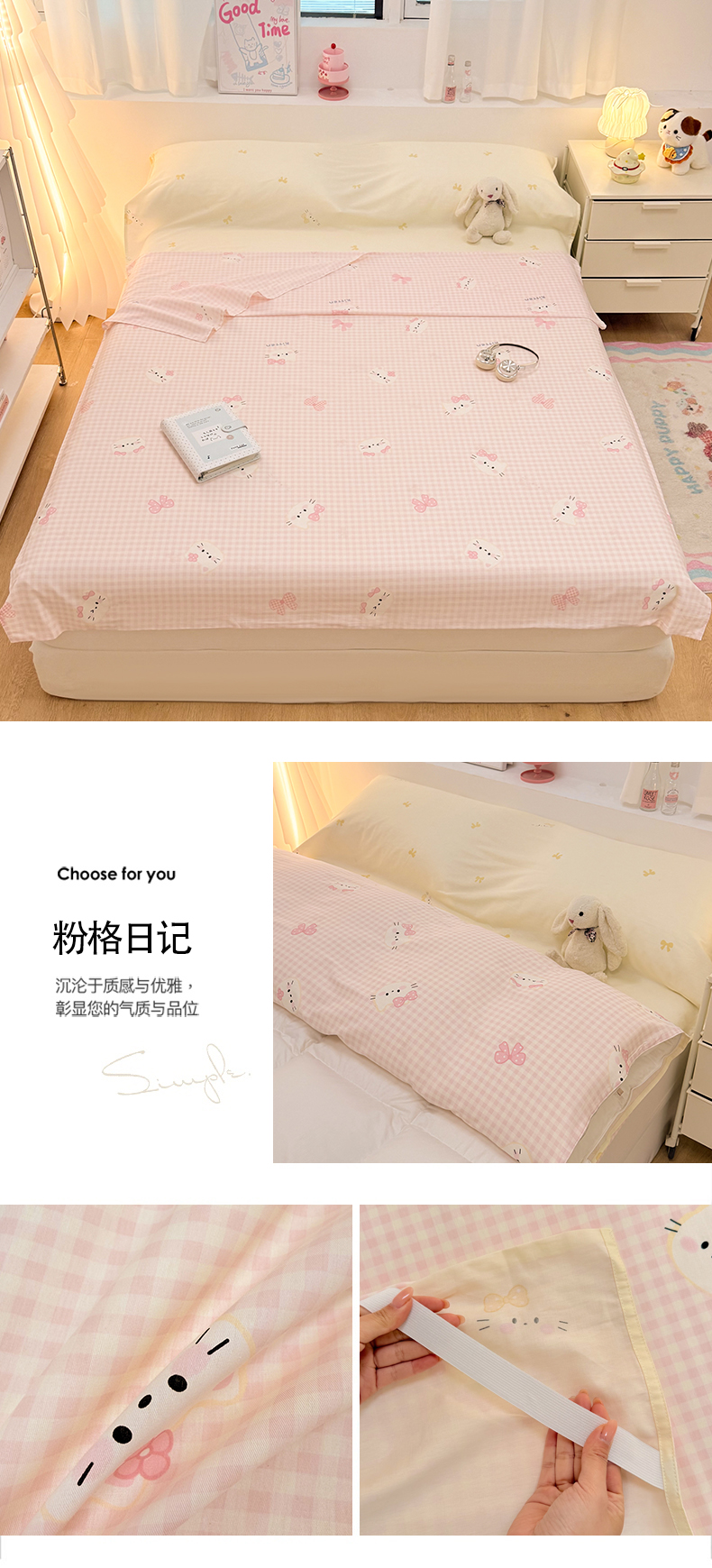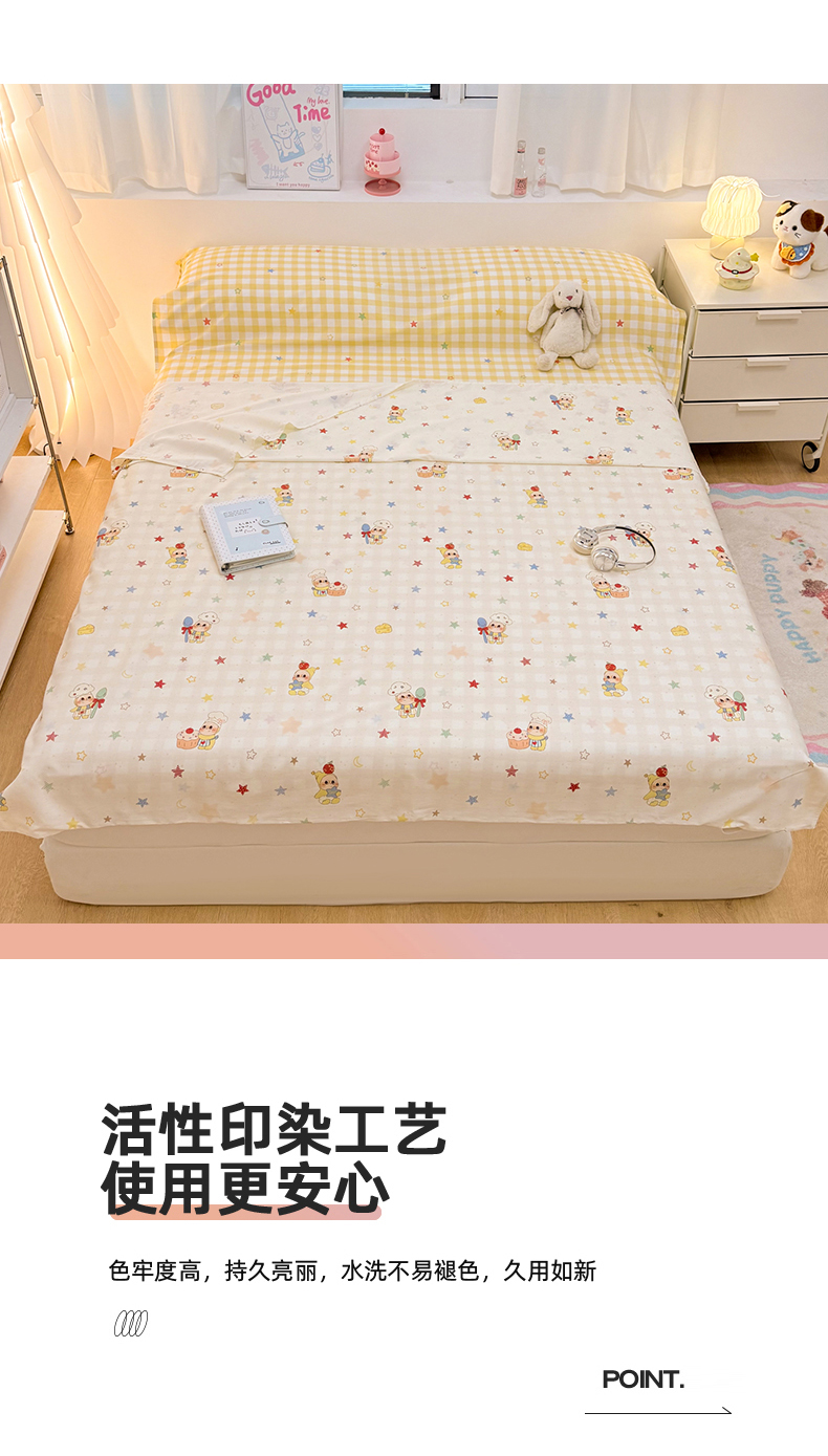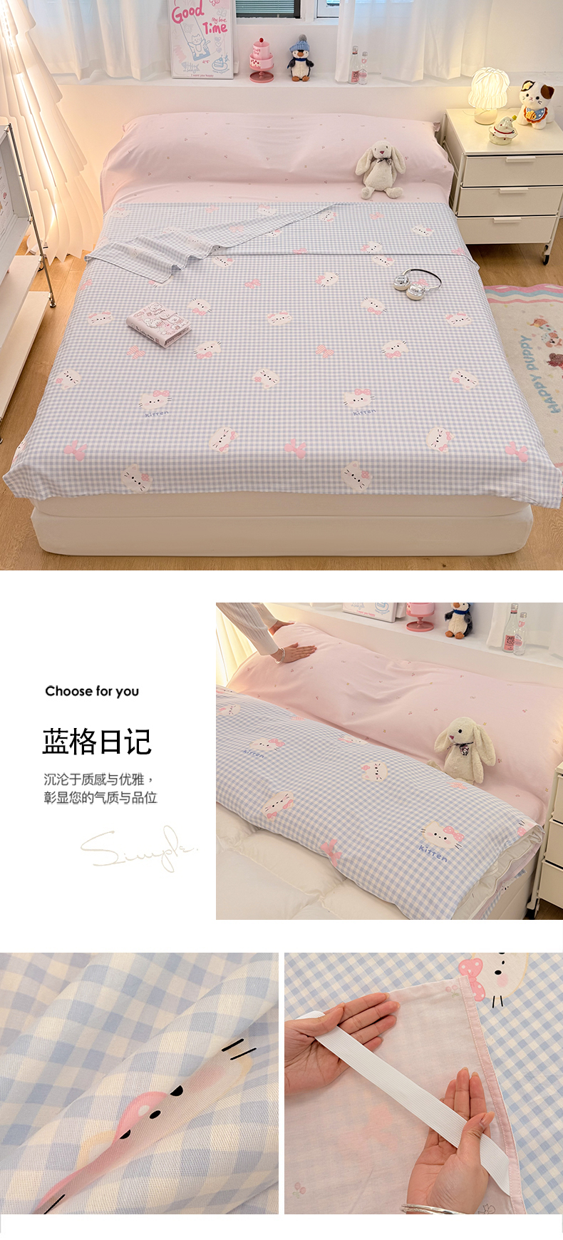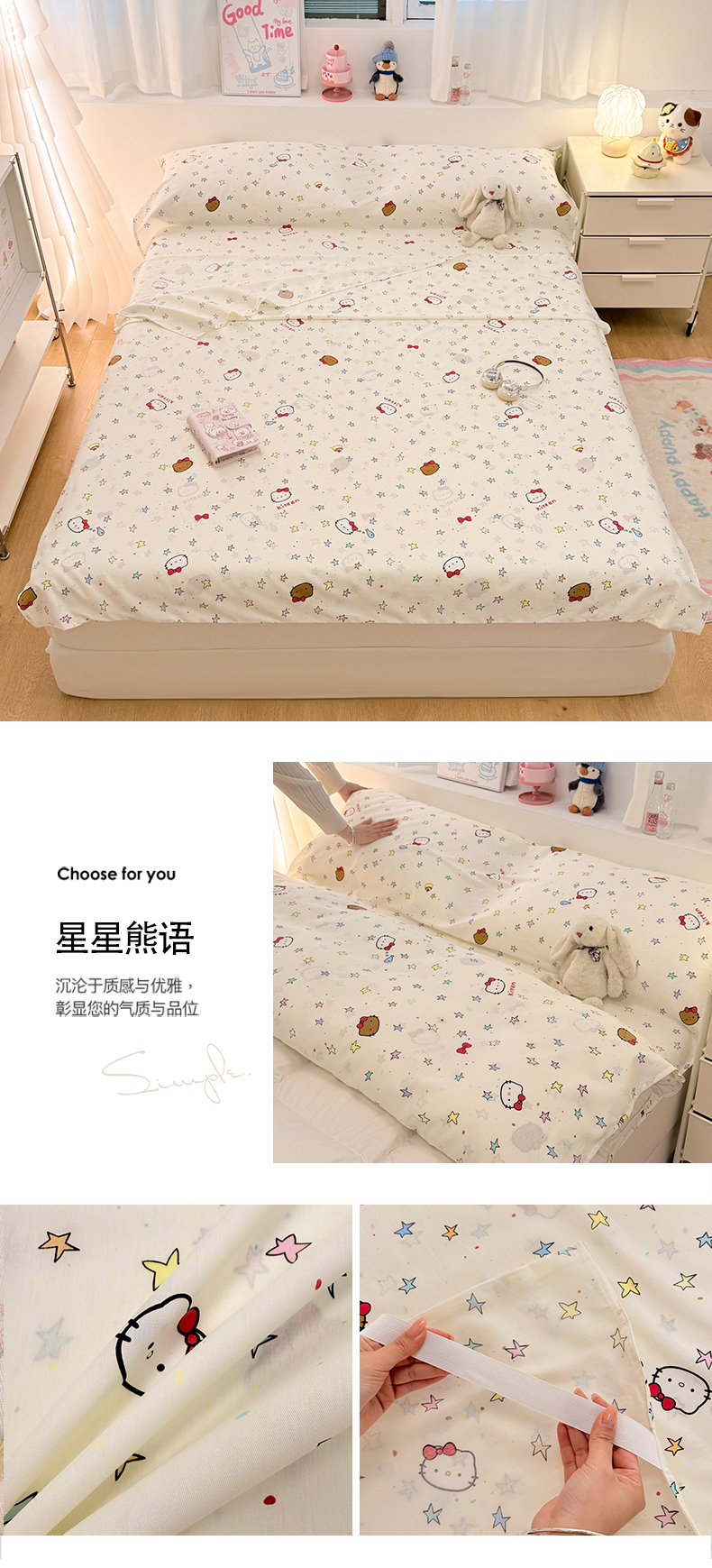 简宜2023新款13070纯棉全棉40支斜纹卡通小清新学生三件套四件套,花园兔,紫葡仙子,倩影粉,hello 萌熊,嘟嘟小车,简笔画,开心小黄鸭,梦幻城堡,浓情爱意