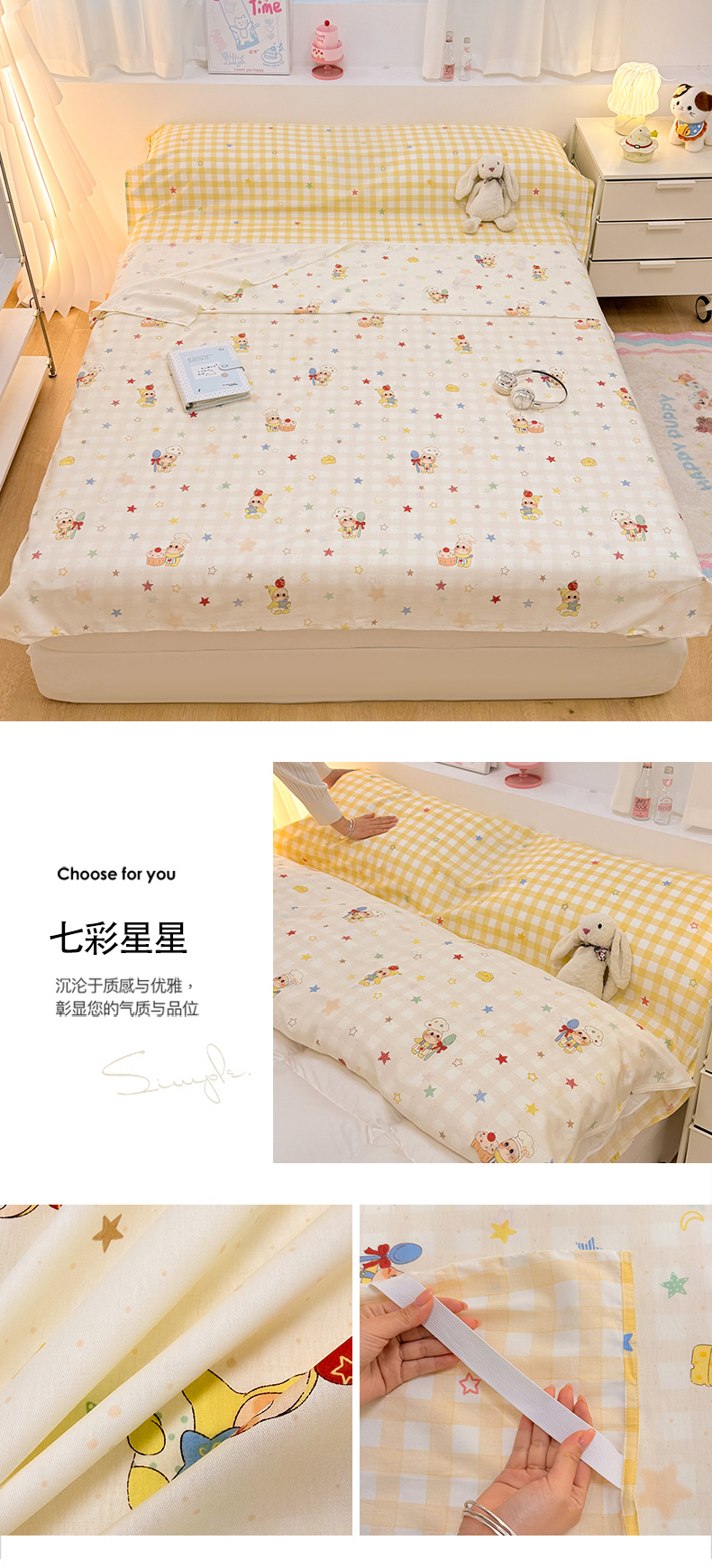 (总)简宜家居(朝初家纺) 2026新款全棉花卉卡通系列贝壳边夏被四件套,七彩星星,彩格爱心,粉格日记,红莓树屋,蓝格日记,萌友聚会,派对小狗-黄,苹果熊格子,星落灰条,星星熊语,樱桃小筑,棕格小熊,Nice狗狗-兰
