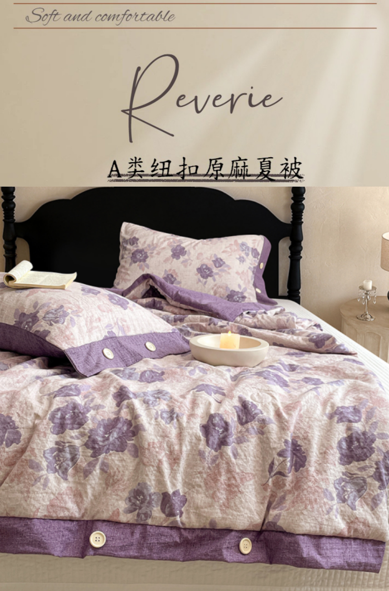 (总)梦舒羽 2026新款A类夏天原麻纽扣加厚夏被宿舍双人床仿亚麻被子被芯,淮水竹亭,清风花叙,安紫,梵希,花与蝶,金枝玉叶,素锦,忆秋风,组合