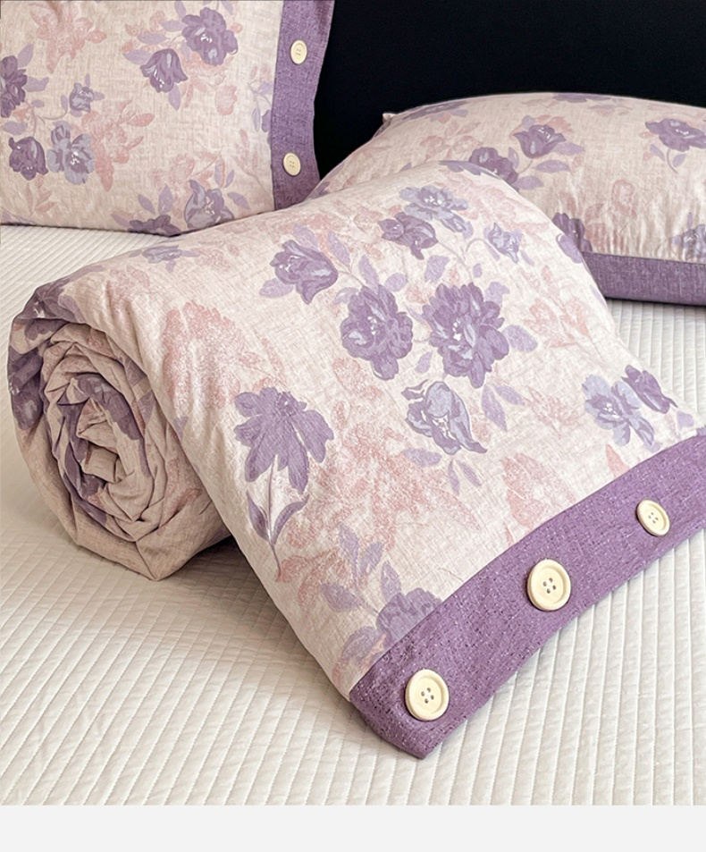 商品名称:梦舒羽 2026新款A类夏天原麻纽扣加厚夏被宿舍双人床仿亚麻被子被芯 安紫