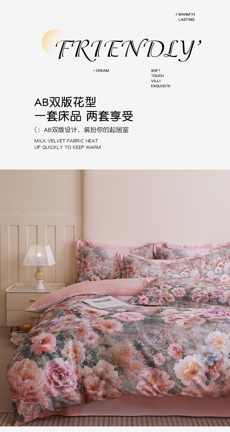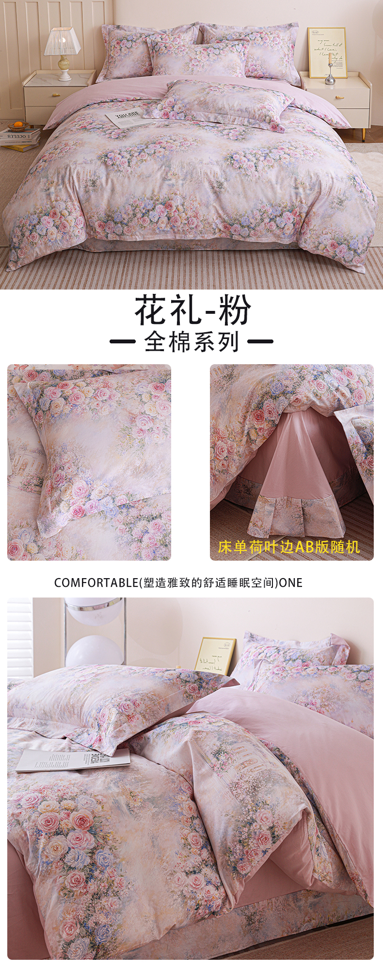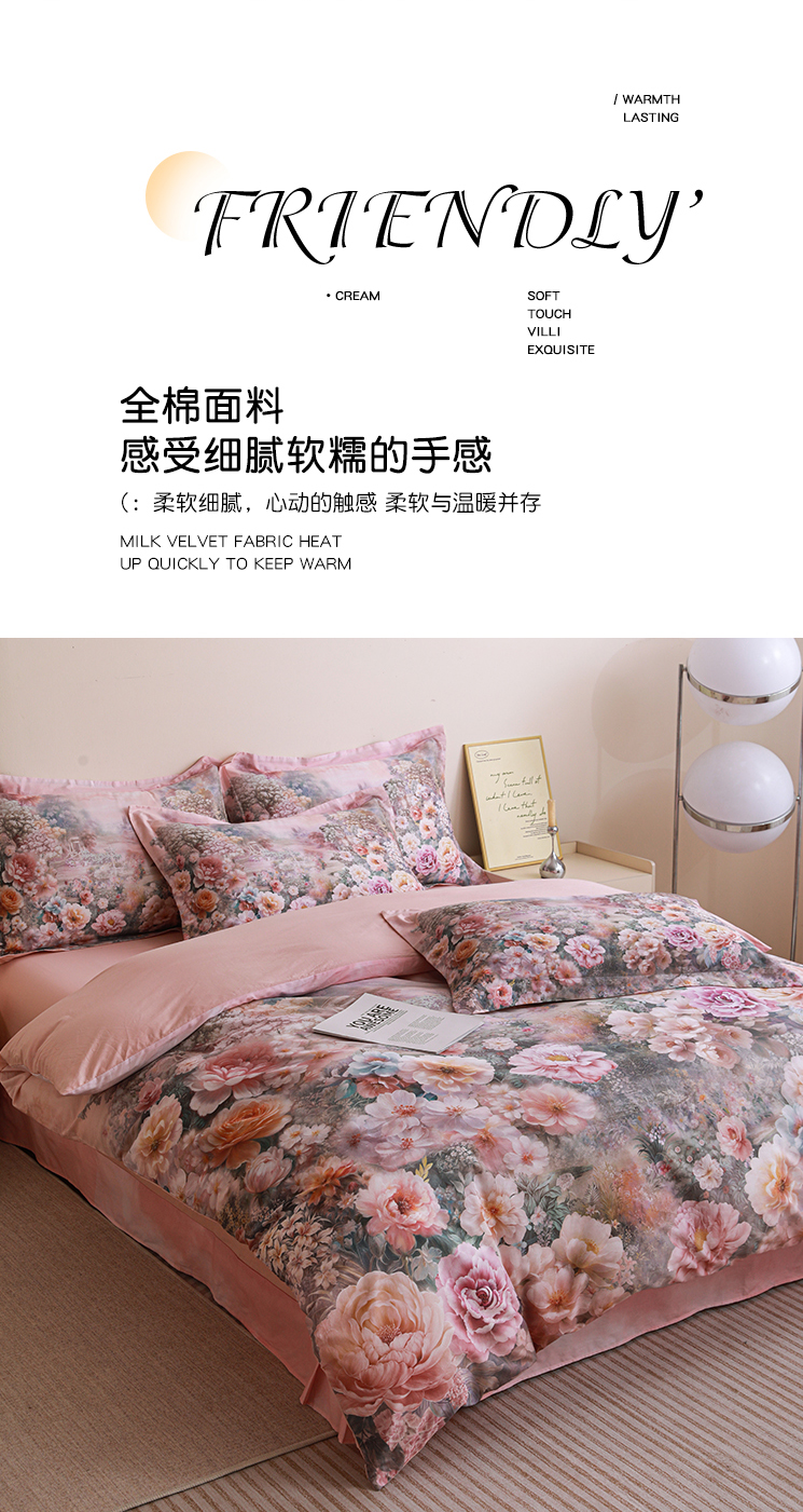 当前位置: 91家纺网 > 商品网购 > 床品套件 > 四件套 > 全棉普通四件套 > 朵希曼 2026新款全棉纯棉大版定位13376数码印花系列四件套 池花映日-粉