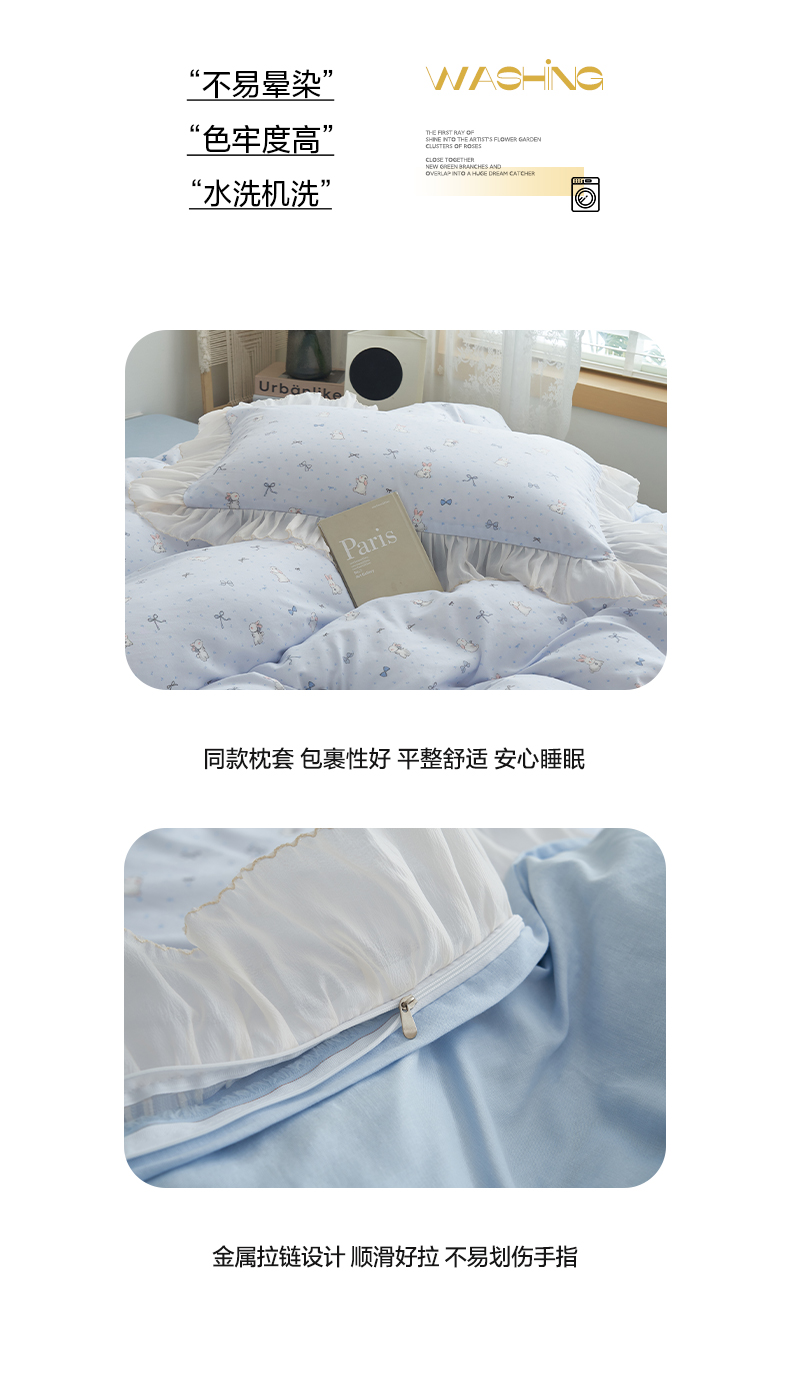 当前位置: 91家纺网 > 商品网购 > 床品套件 > 四件套 > 其它四件套 > 晨曦家纺 2026春夏新款雪花皱纱花边小碎花小清新少女风四件套 奶蓝兔叽