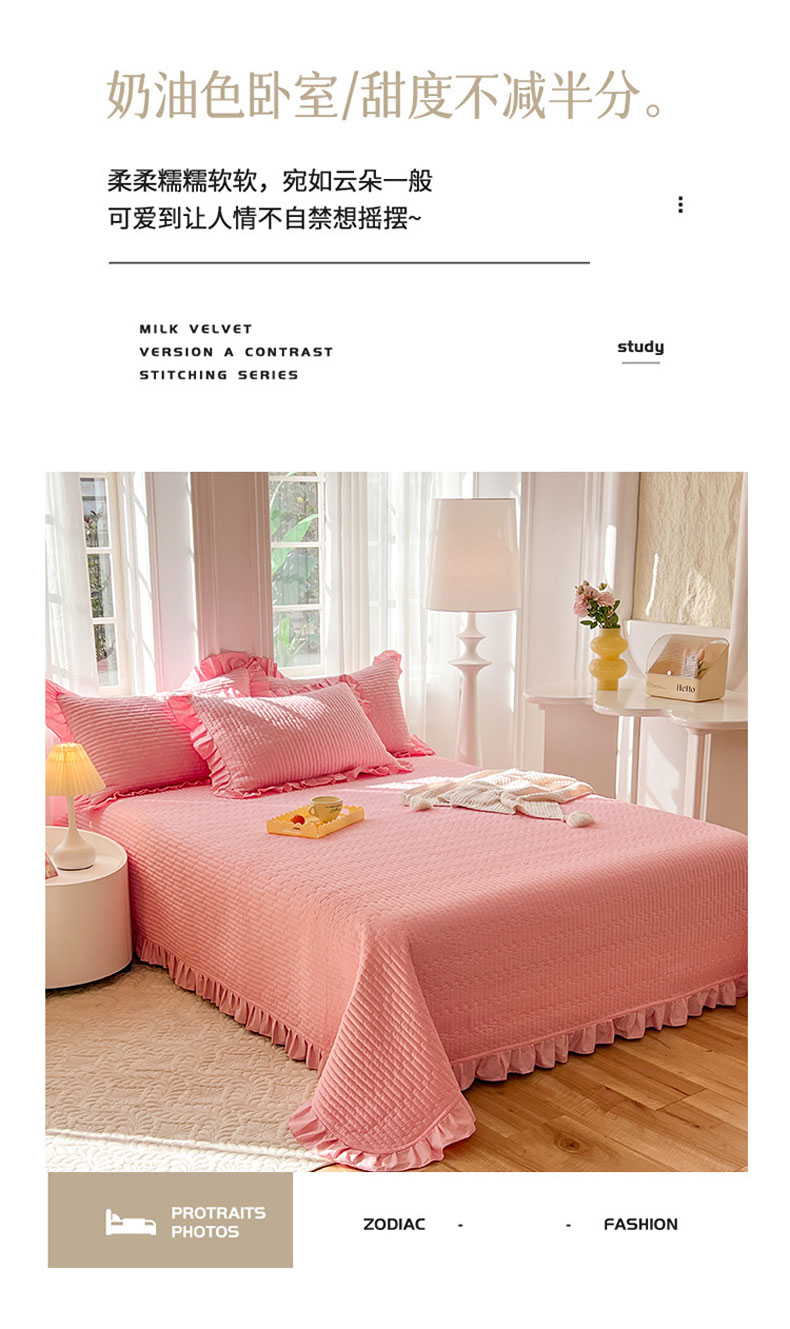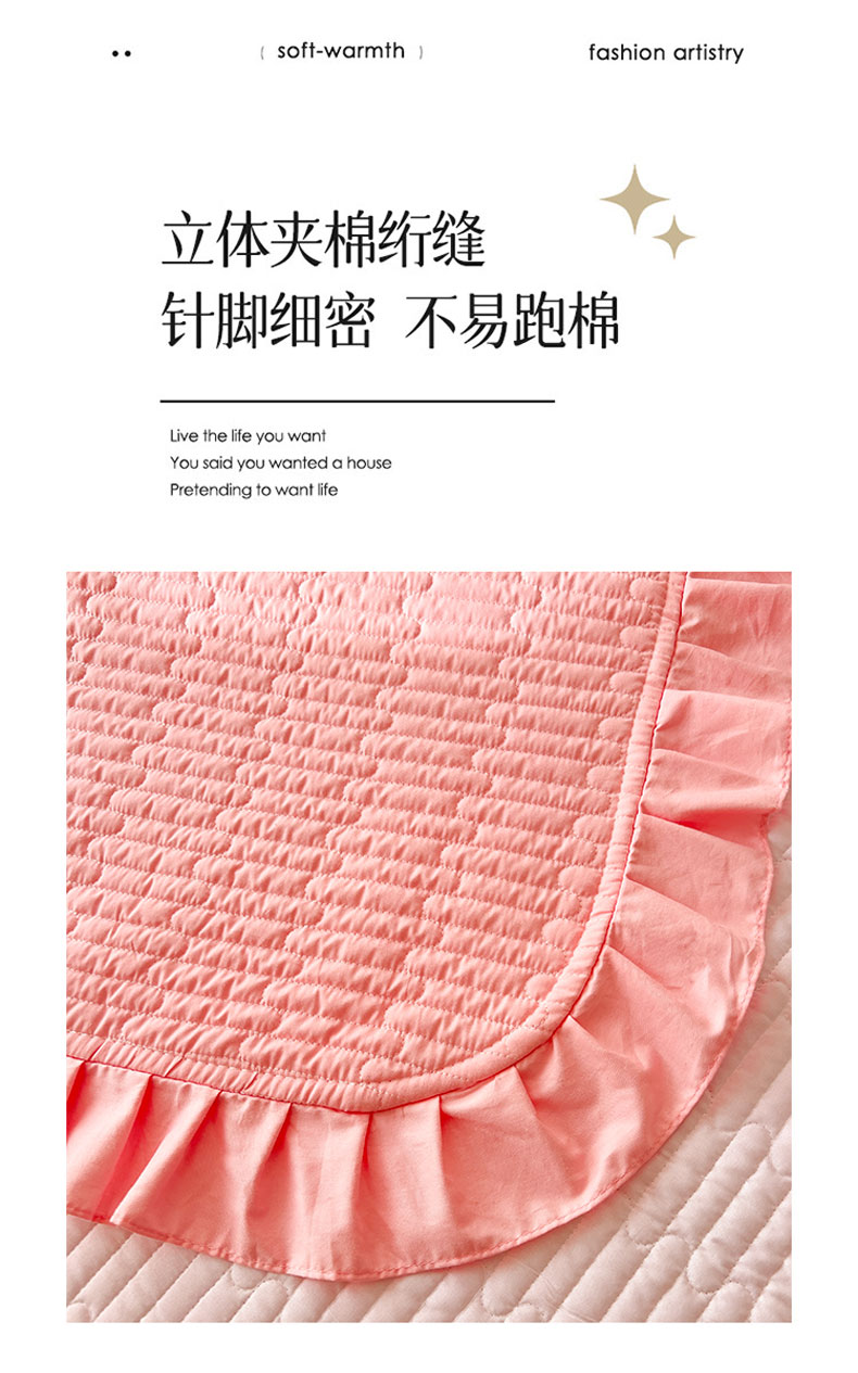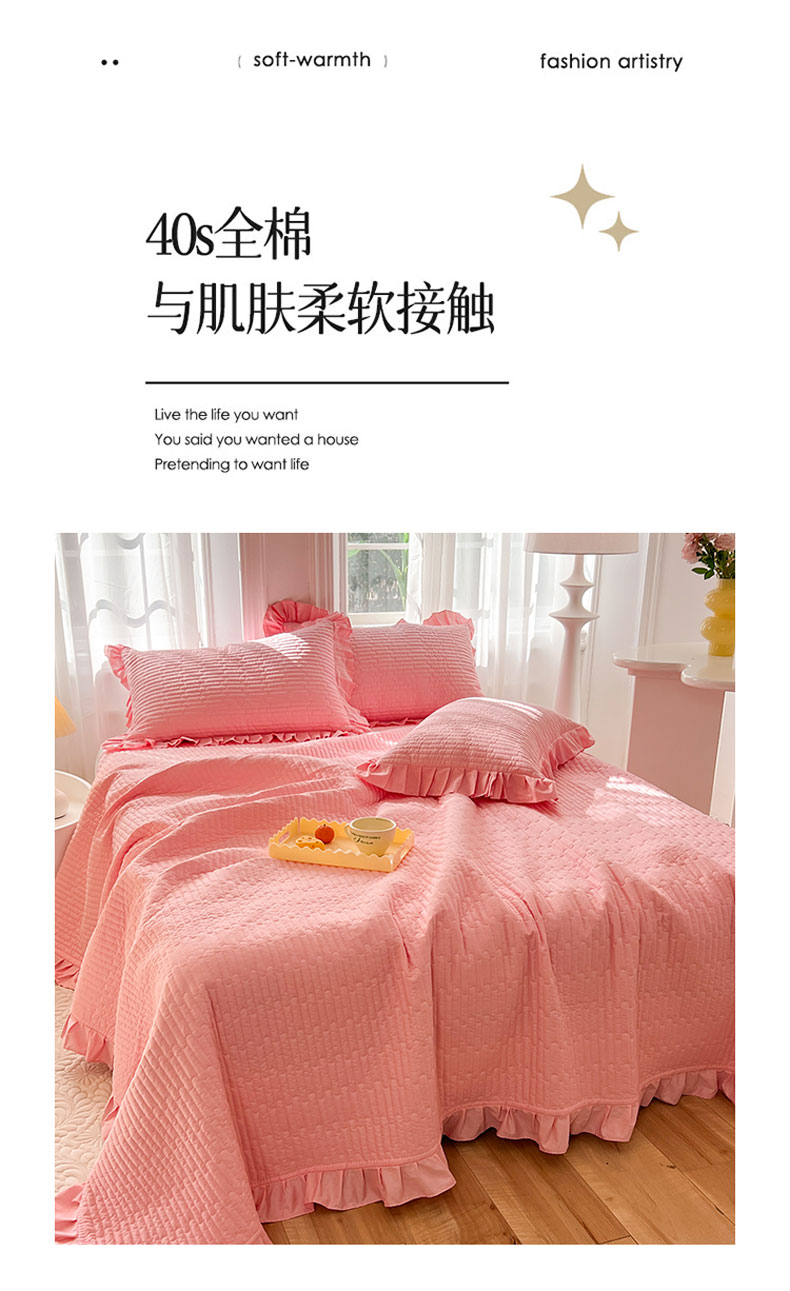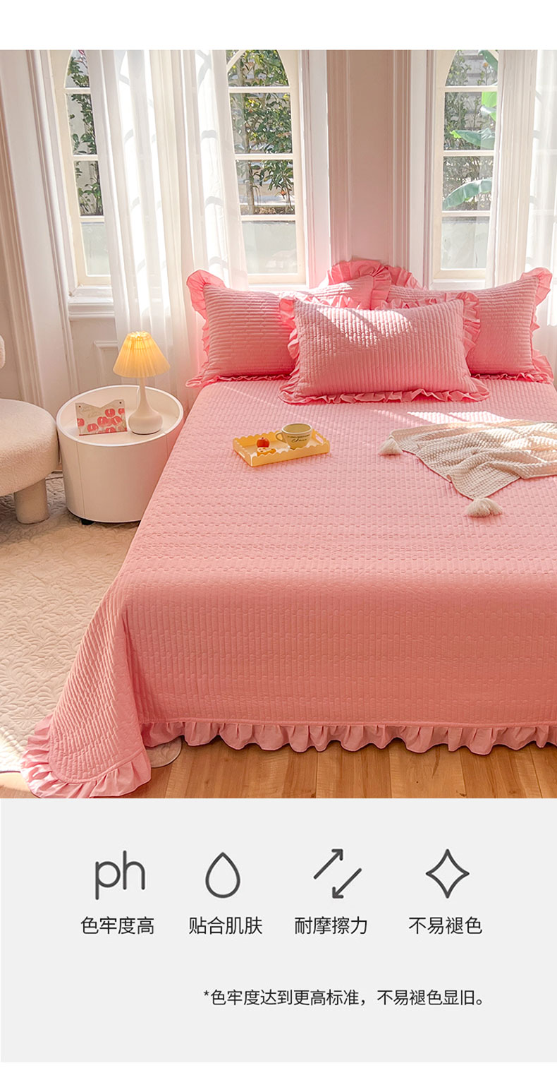 • 91家纺网 家纺一手货源 找家纺 花香四季家纺 2026新款13376全棉夹棉床盖三件套13372纯棉纯色床盖花边公主风(可定制任意尺寸) 荔枝粉