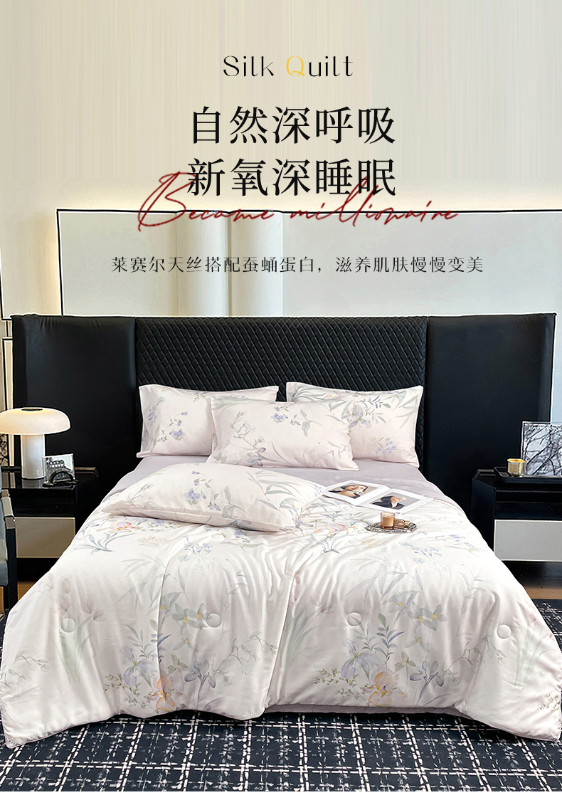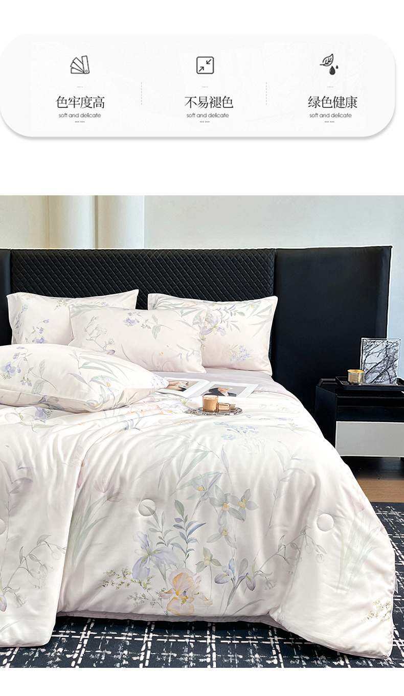 (总)尊妙被业 2026春夏新款莱赛尔天丝夏被蚕蛹蛋白夏被夏凉被空调被四件套-印花款,暗香绘-棕,花颜外-蓝,林屿间-粉,林语花夏-米,柳语素枝-绿,蔓行-绿,沐初-兰,叶间绒雪-兰,自然低语-绿