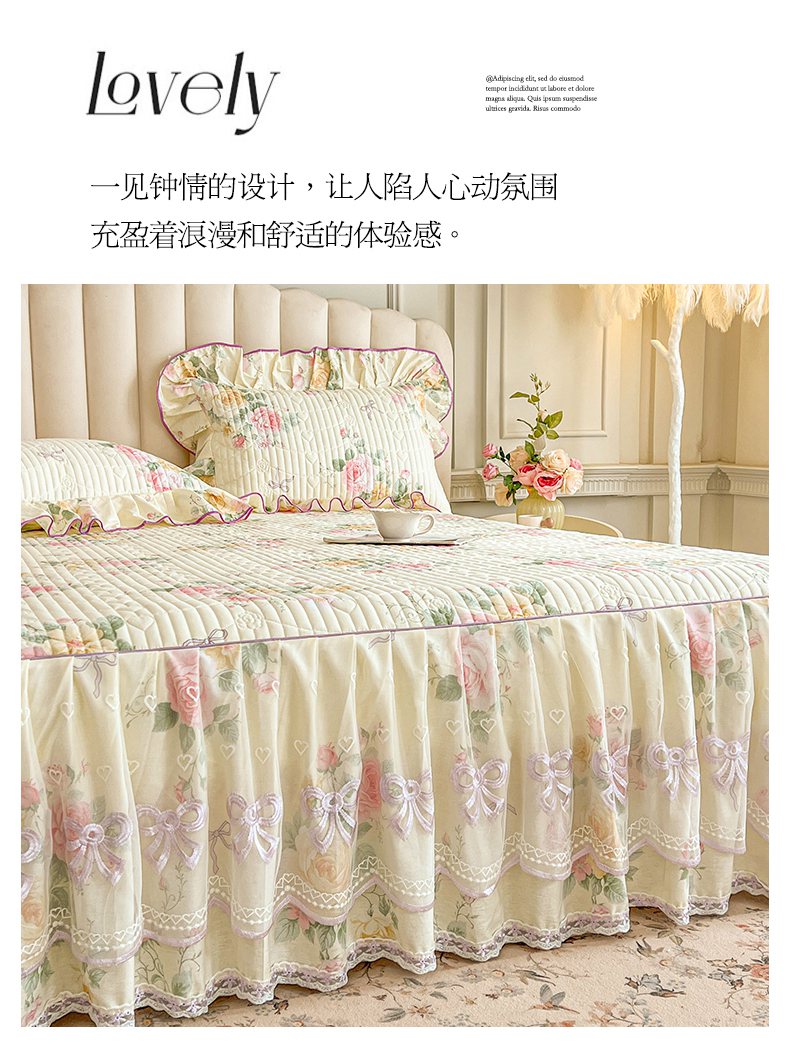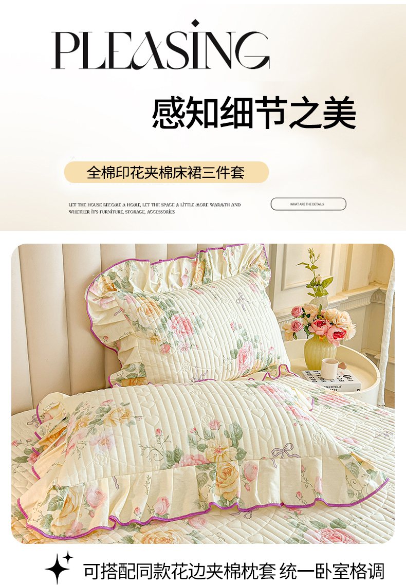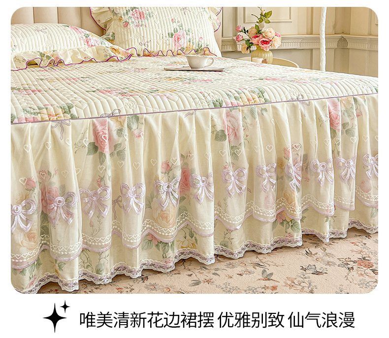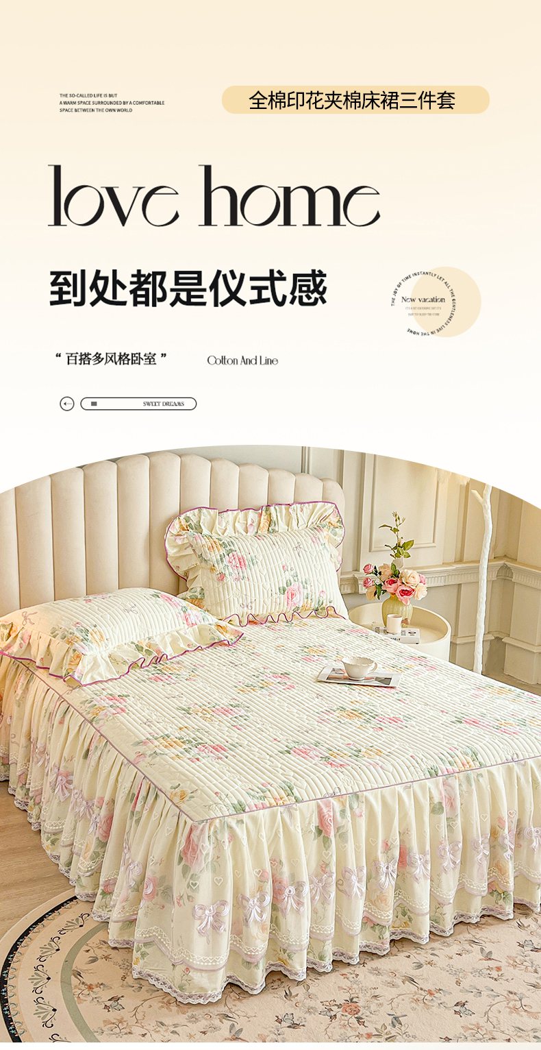 当前位置: 91家纺网 > 商品网购 > 床品套件 > 三件套 > 宜凡家纺 2026新款全棉印花公主风夹棉床裙三件套 沐颜月朵