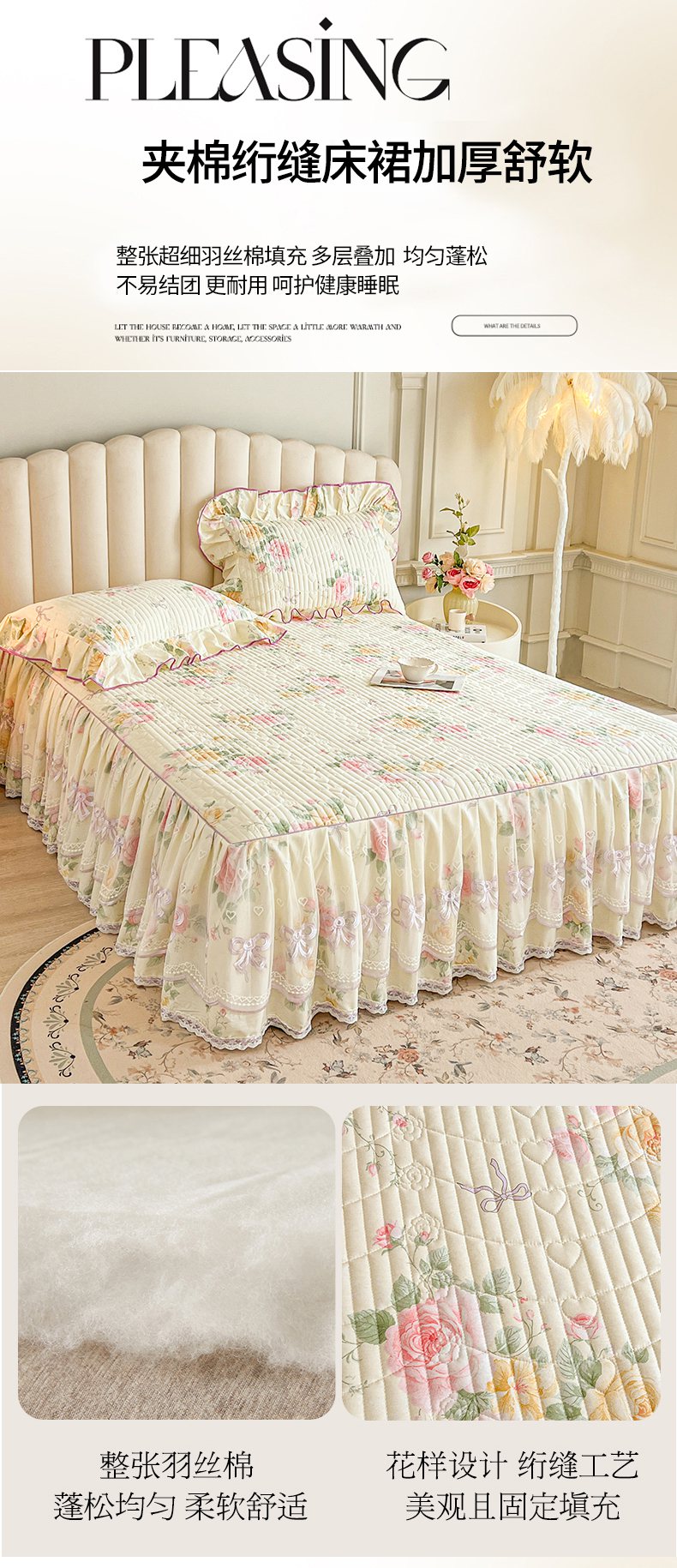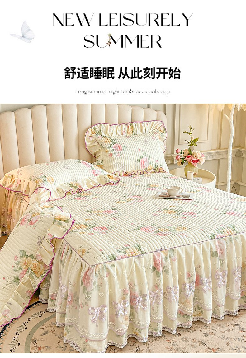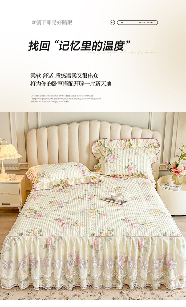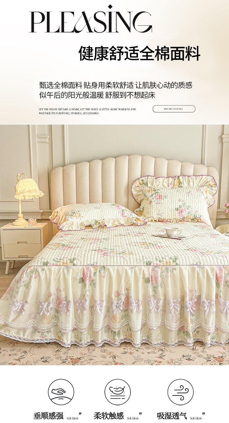 当前位置: 91家纺网 > 商品网购 > 床品套件 > 三件套 > 宜凡家纺 2026新款全棉印花公主风夹棉床裙三件套 沐颜月朵