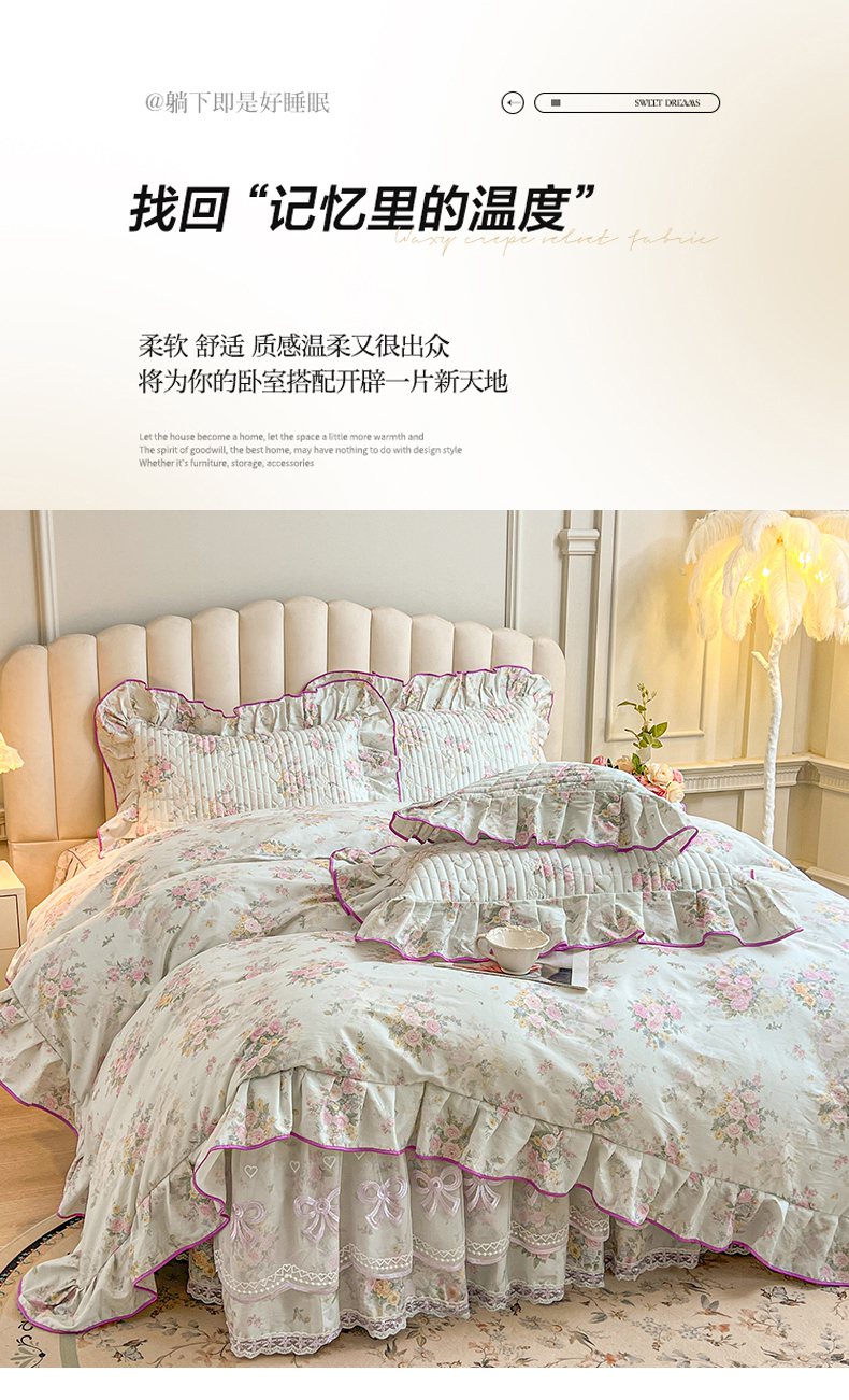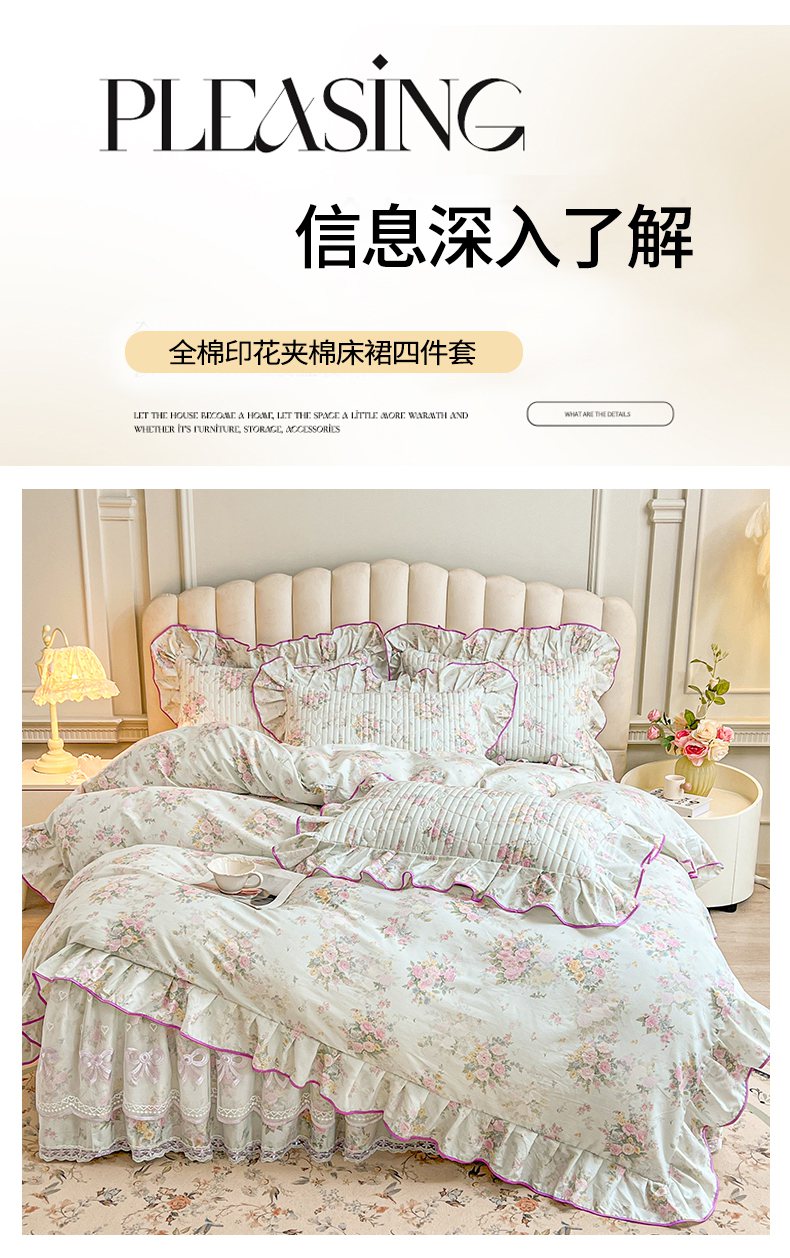 当前位置: 91家纺网 > 商品网购 > 床品套件 > 四件套 > 全棉普通四件套 > (总)宜凡家纺 2026新款全棉印花公主风夹棉床裙四件套