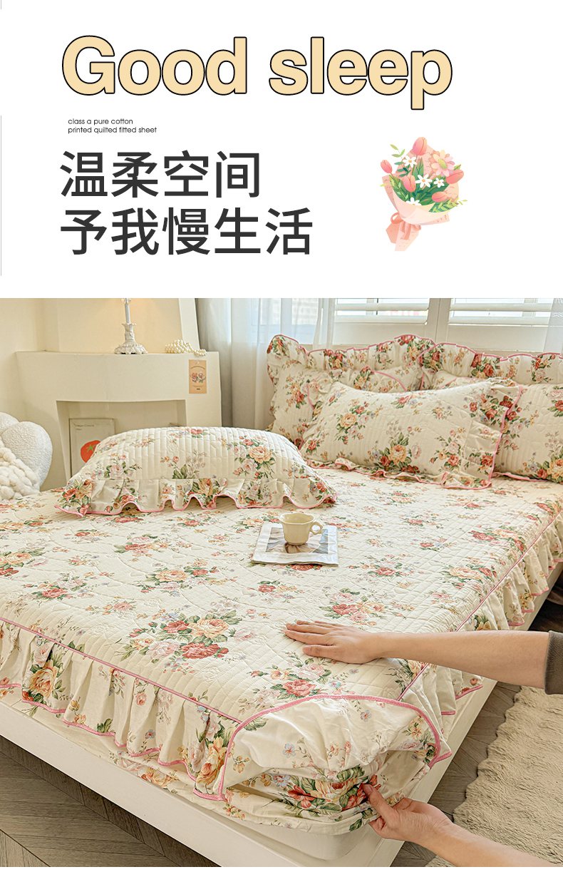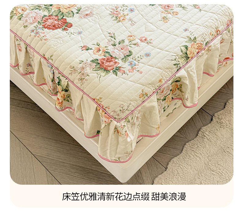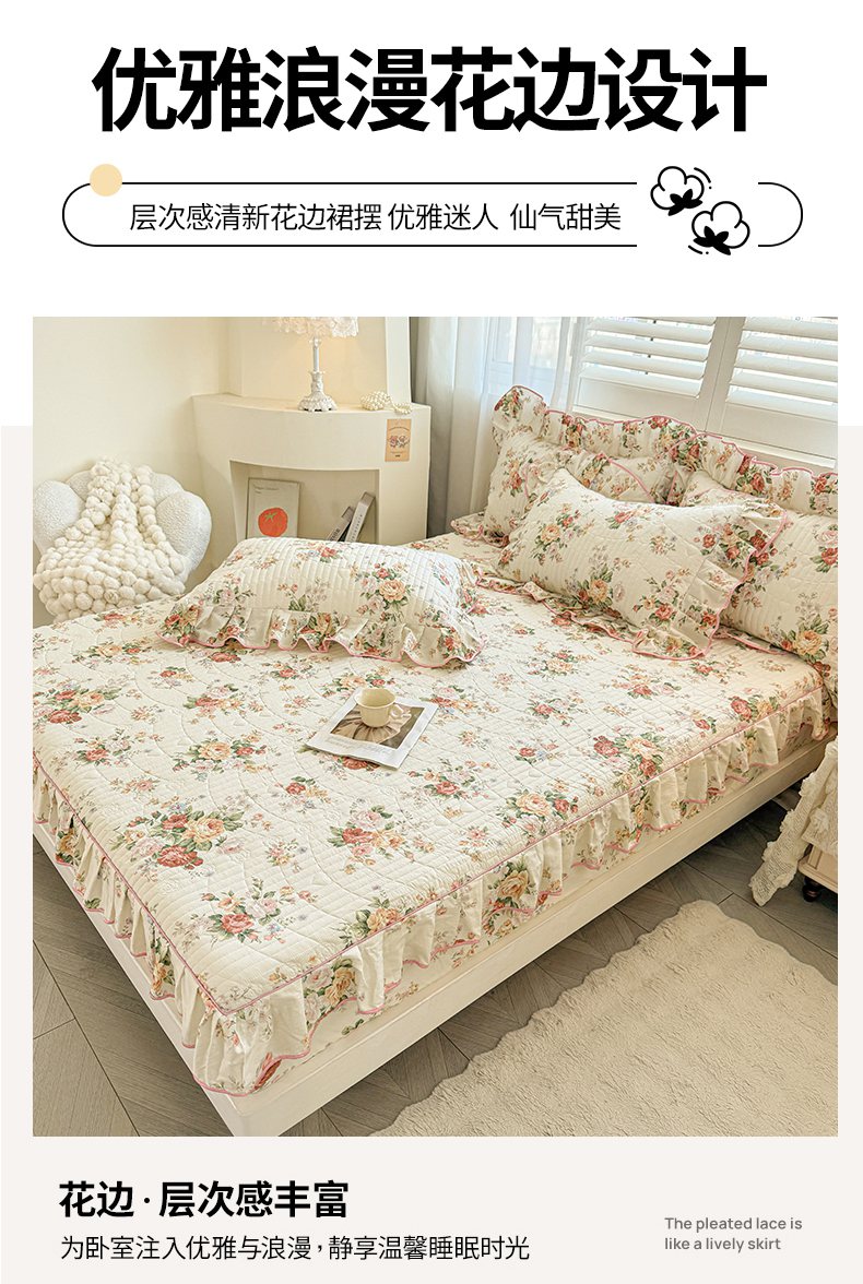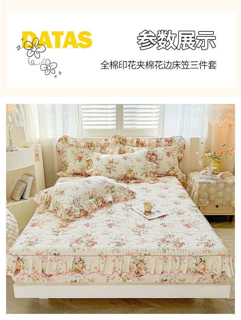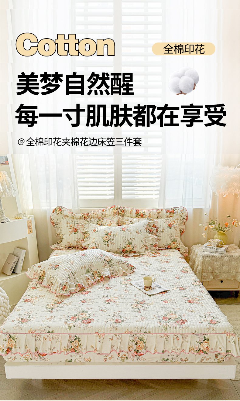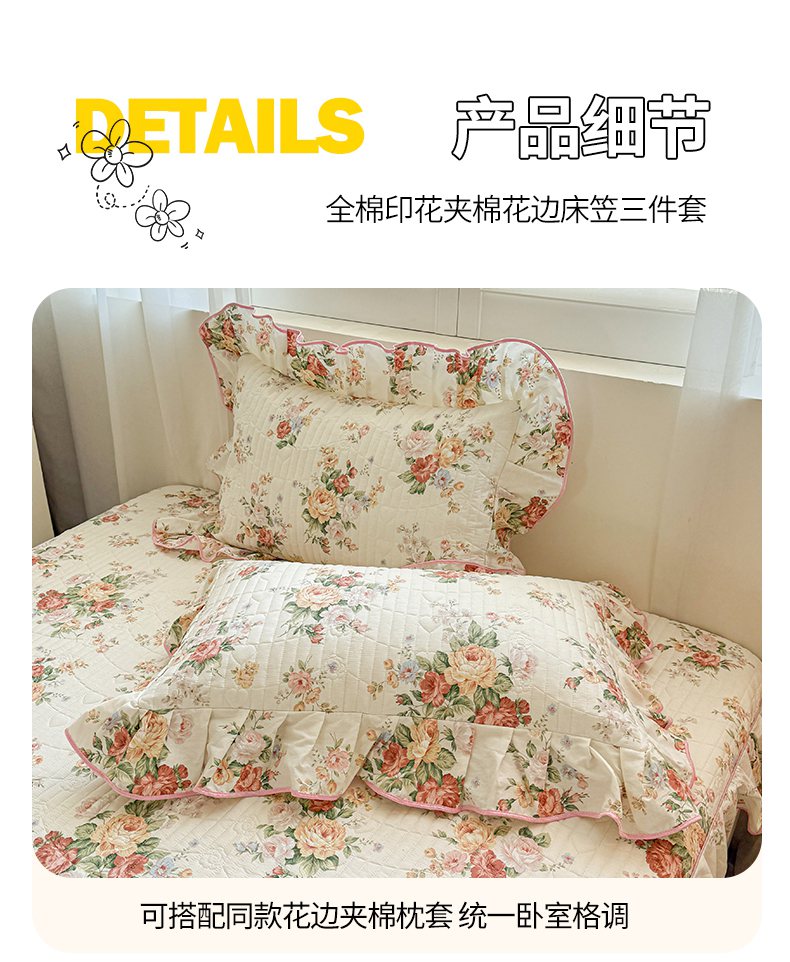 当前位置: 91家纺网 > 商品网购 > 床品套件 > 三件套 > 宜凡家纺 2026新款全棉夹棉花边床笠三件套 洛川花海