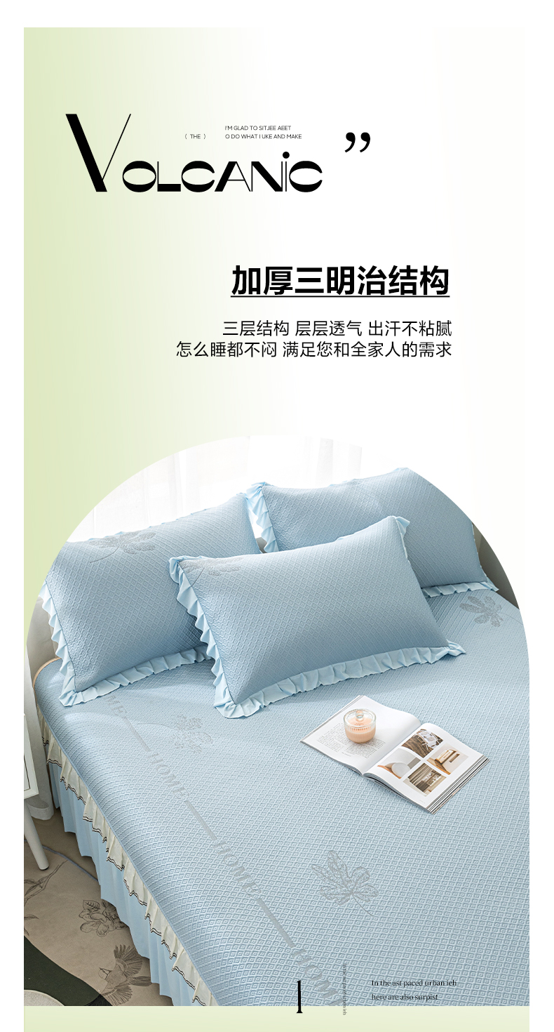 • 91家纺网 家纺一手货源 找家纺 美优兰 2026新款PE提花凉感冰豆豆三明治复合榻榻米垫 韩式蓝