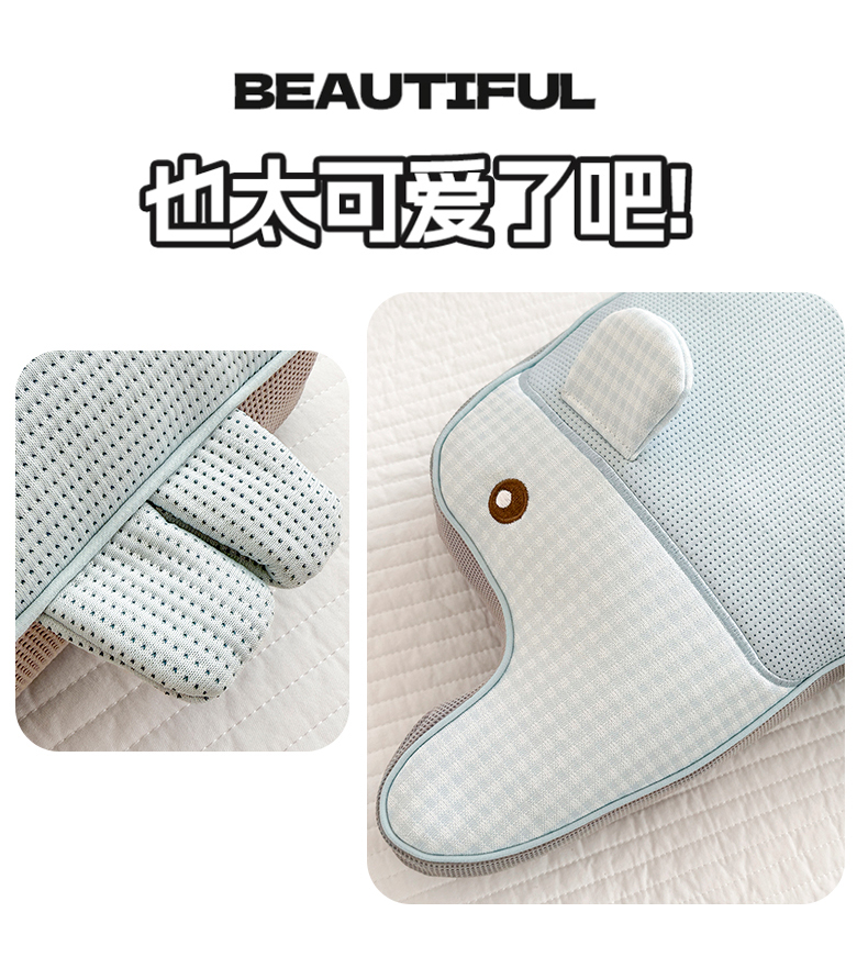 商品名称:蔻眠 凉感丝卡通小象荞麦护颈枕夏季凉豆豆儿童枕芯学生枕头 凉感丝-小象灰