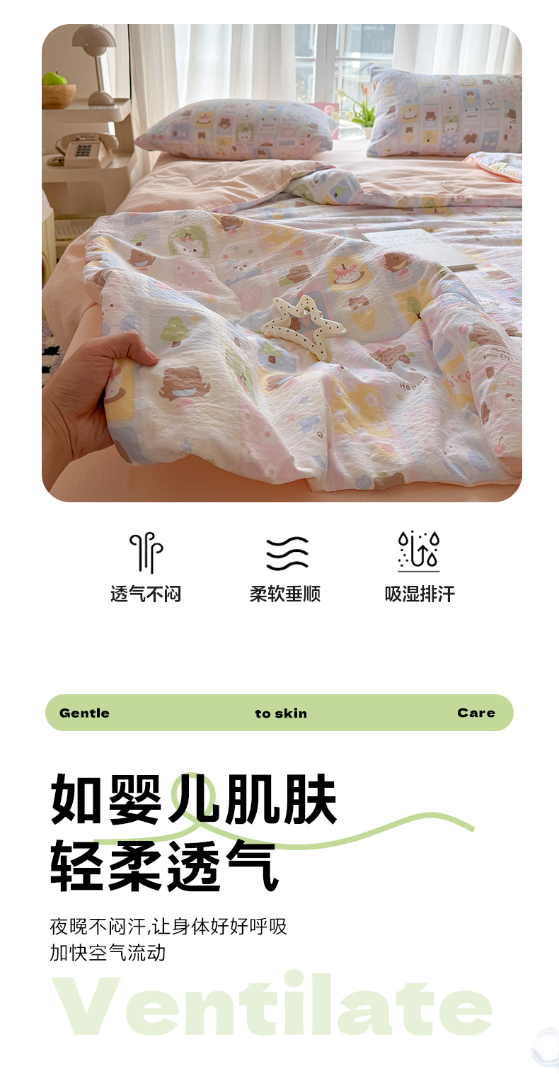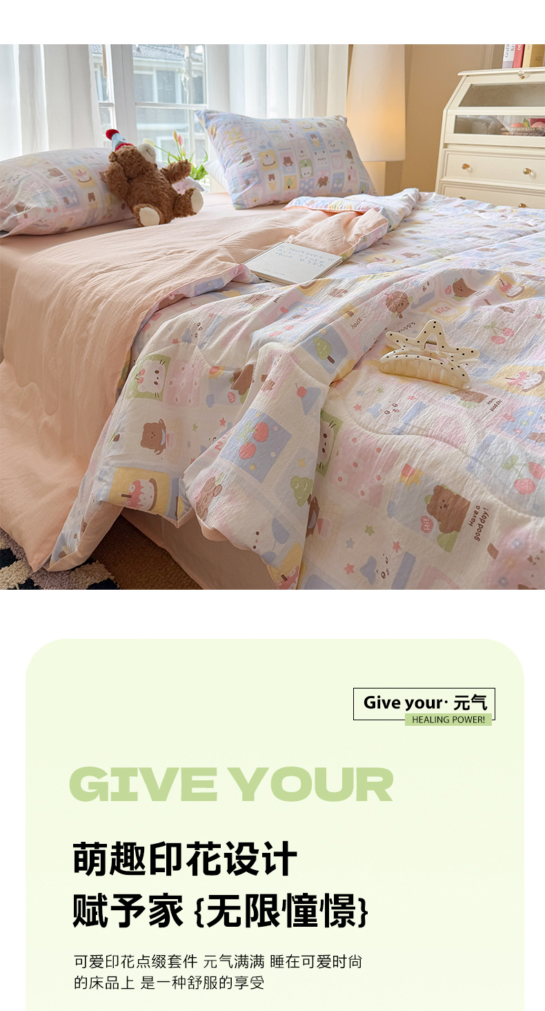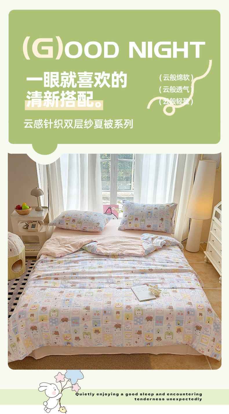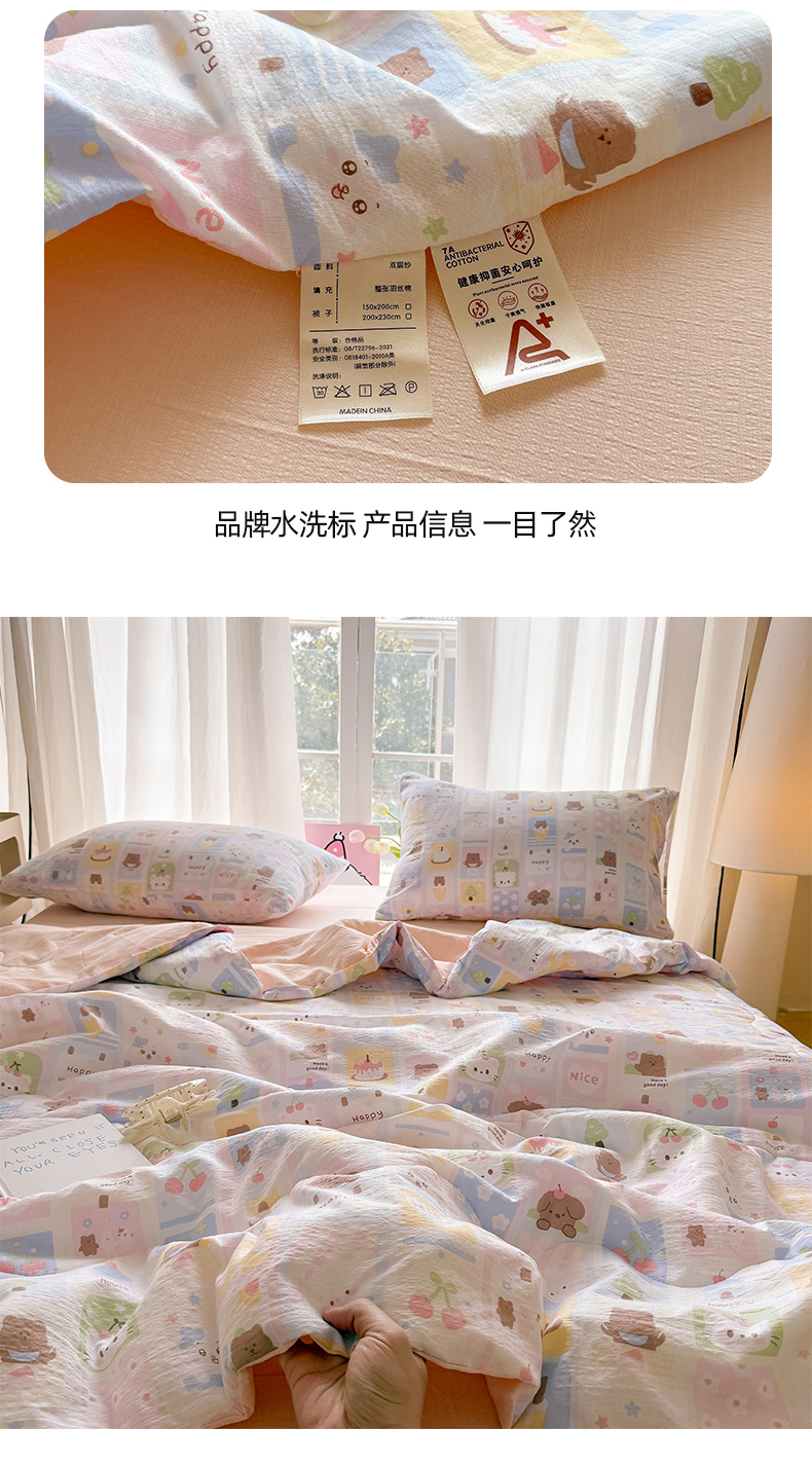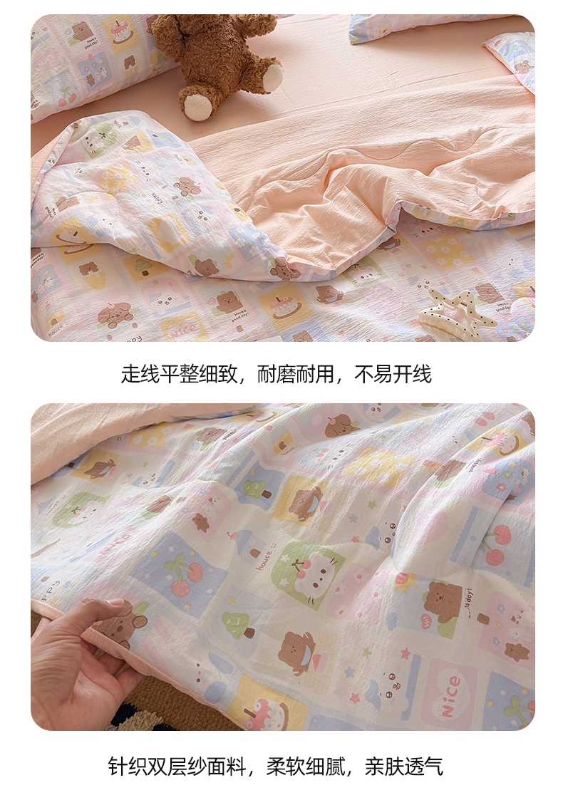 商品名称:温眠家纺 2026新款针织泡芙双层纱夏被四件套 小熊日记