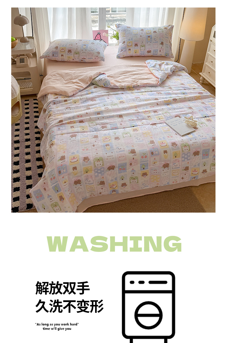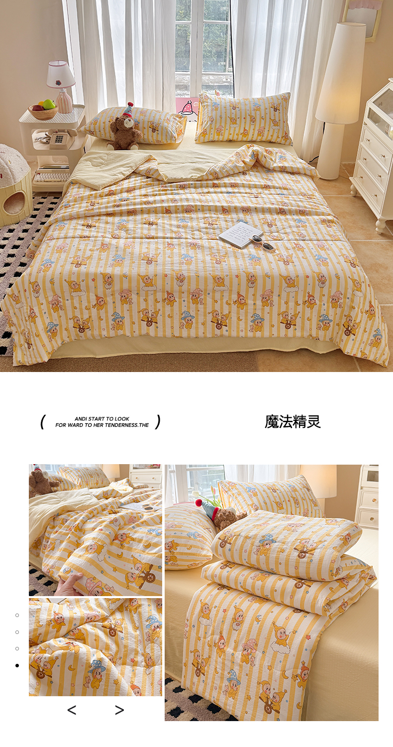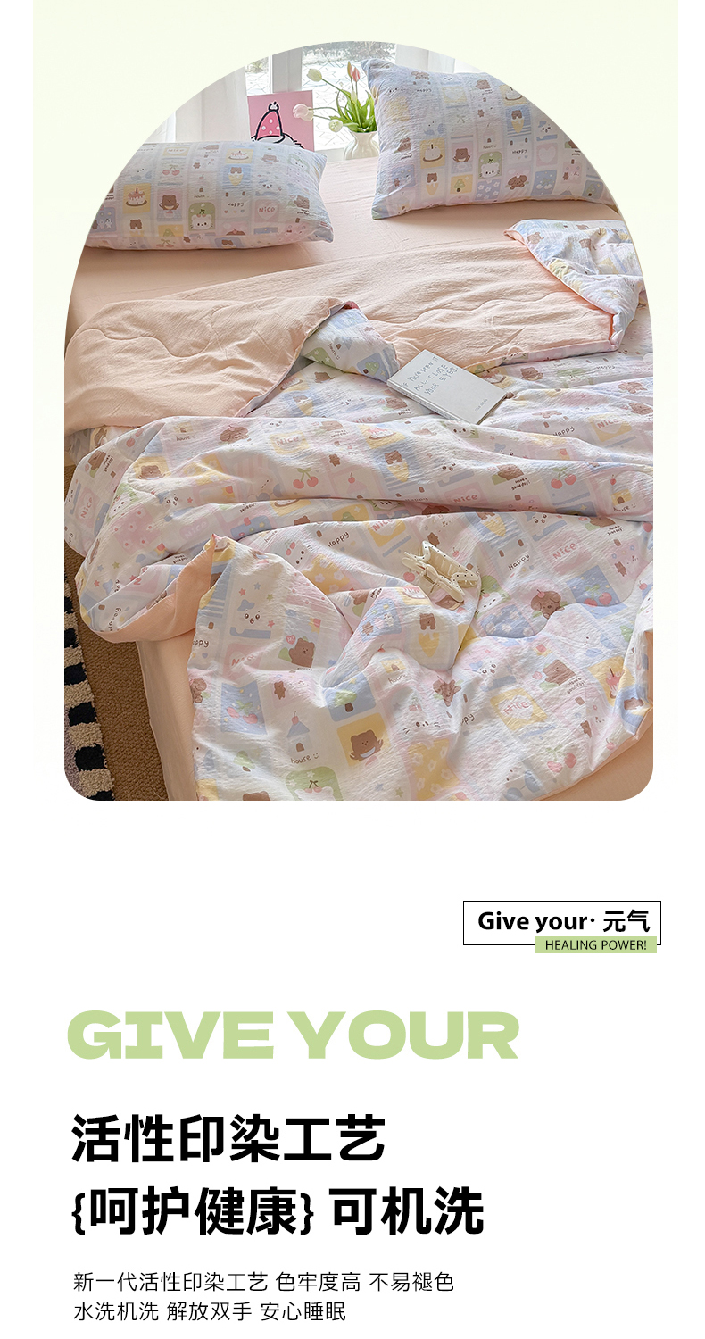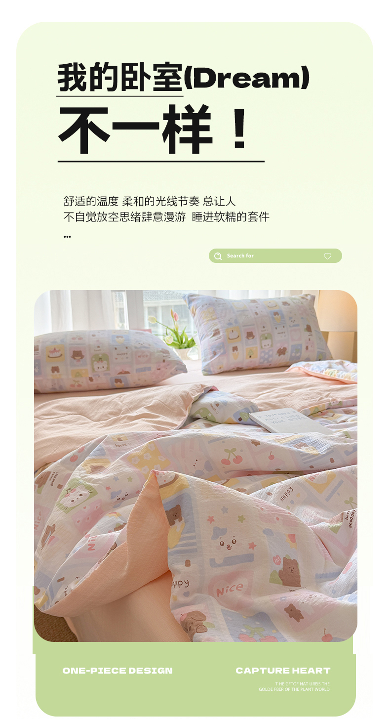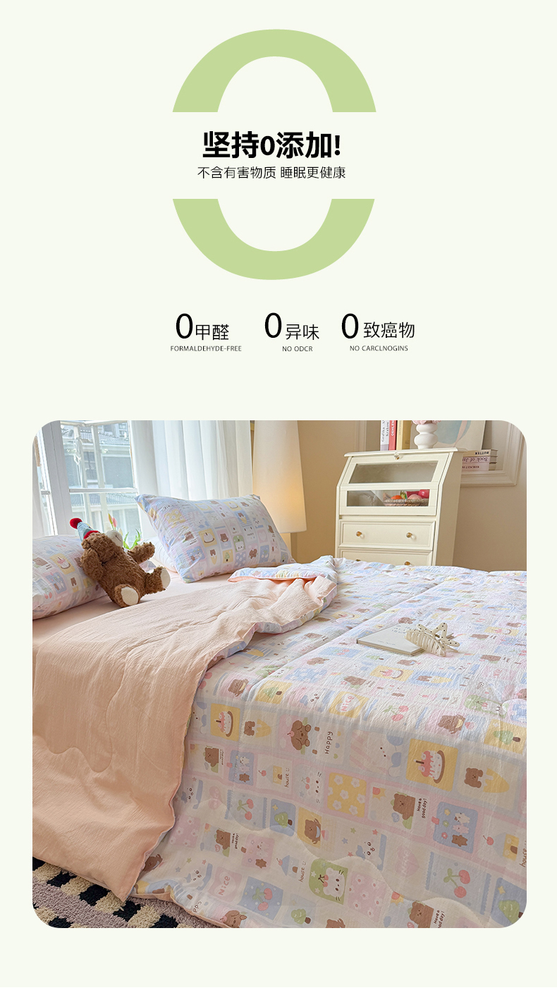 商品名称:温眠家纺 2026新款针织泡芙双层纱夏被四件套 小熊日记