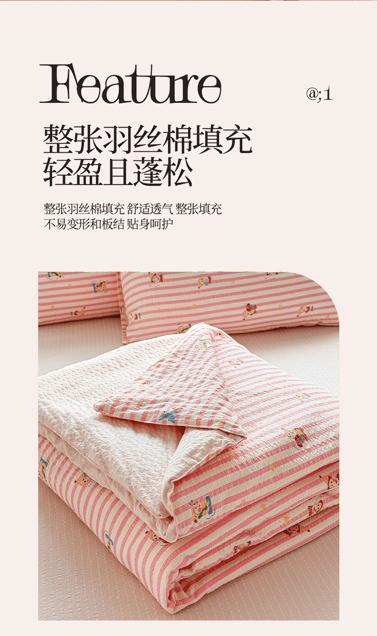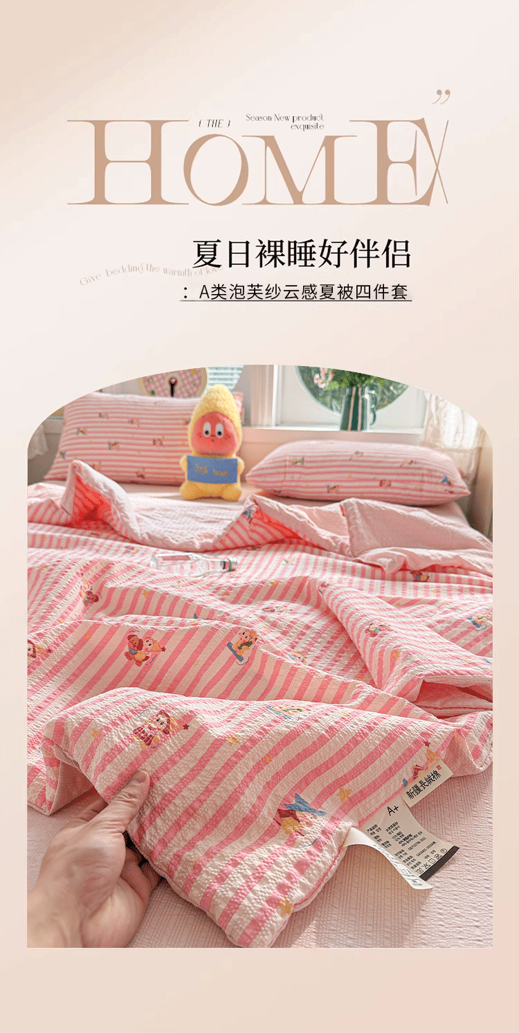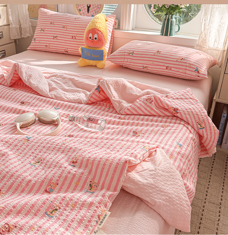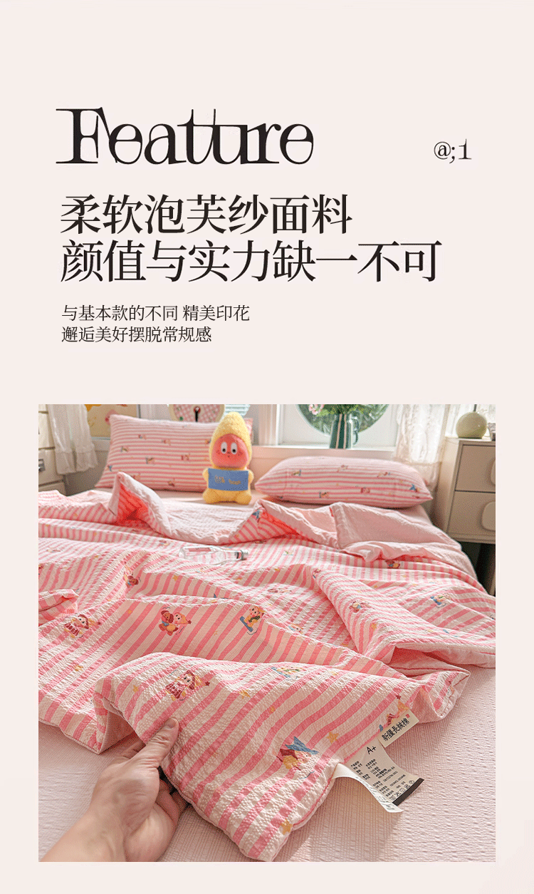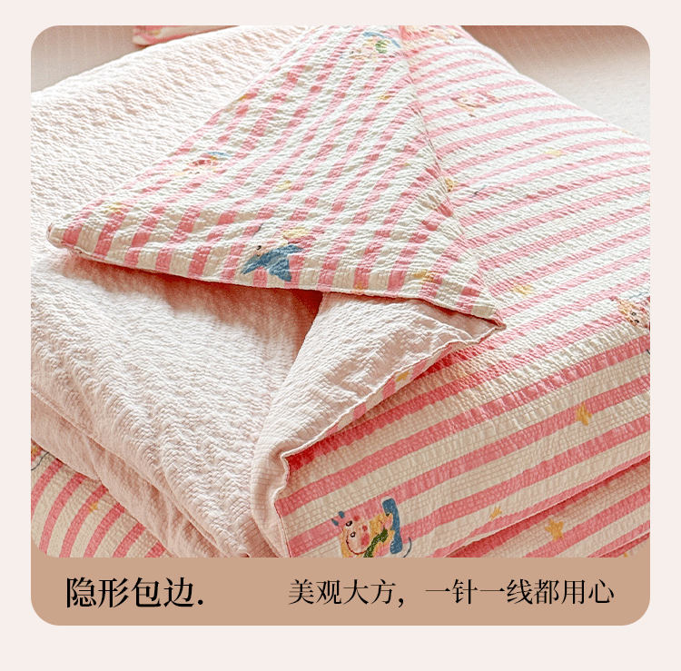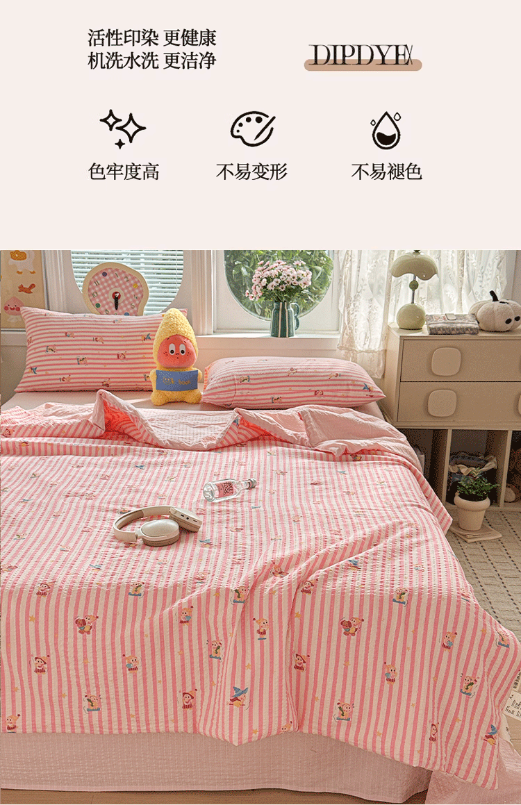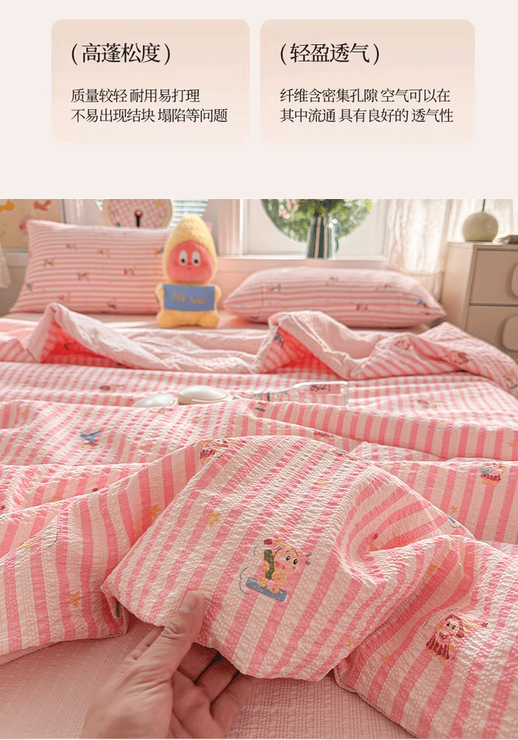 商品名称:小桃姐家纺 2026新款泡芙棉双层纱夏被空调被四件套小清新泡泡纱夏被卡通夏凉被空调被 粉色星星