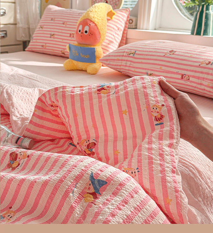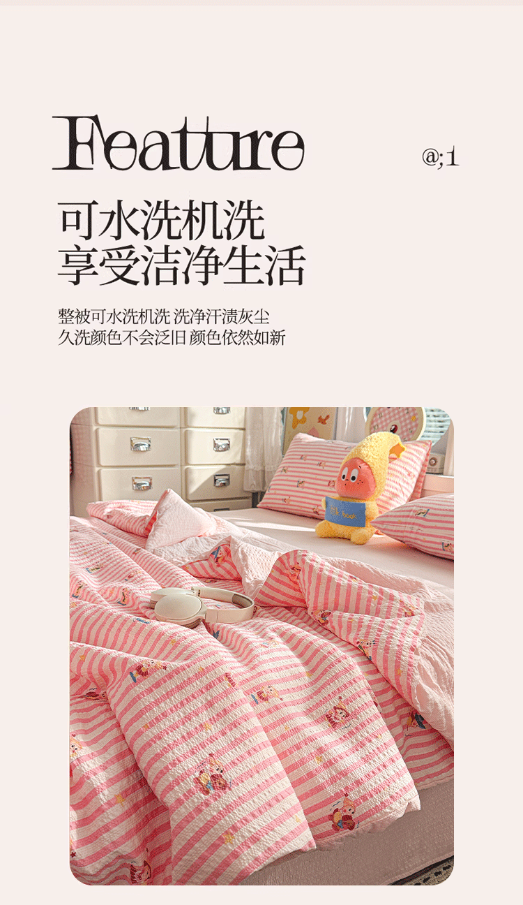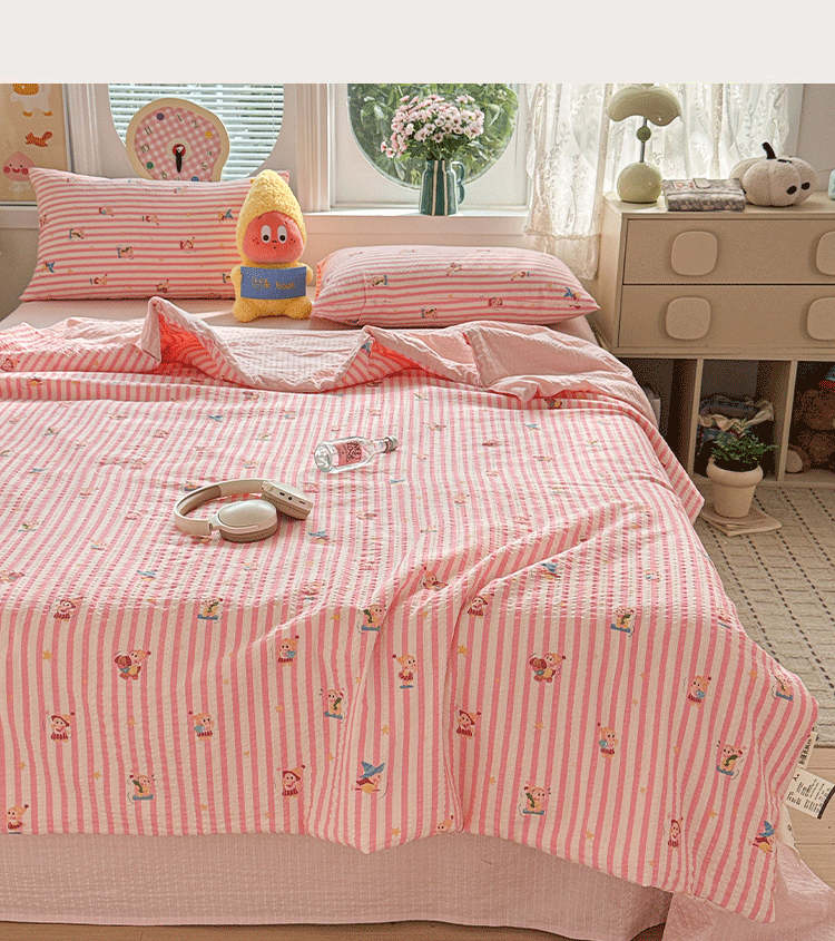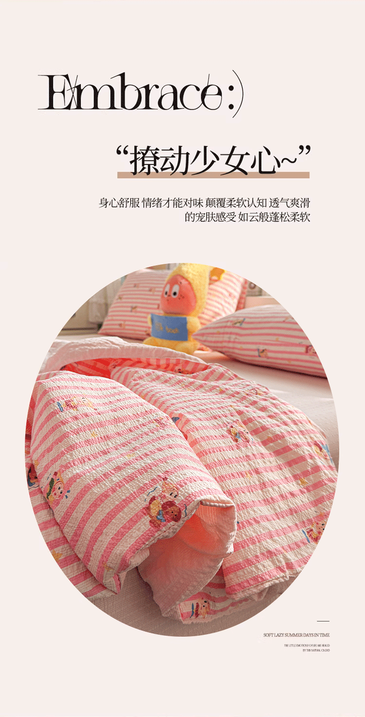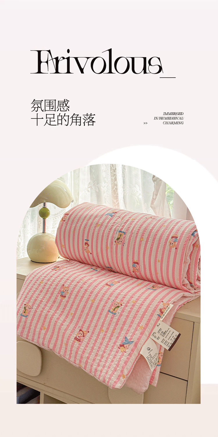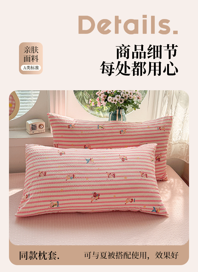 商品名称:小桃姐家纺 2026新款泡芙棉双层纱夏被空调被四件套小清新泡泡纱夏被卡通夏凉被空调被 粉色星星