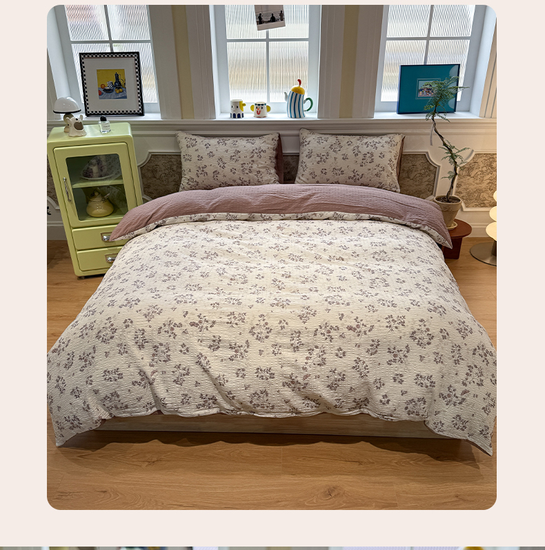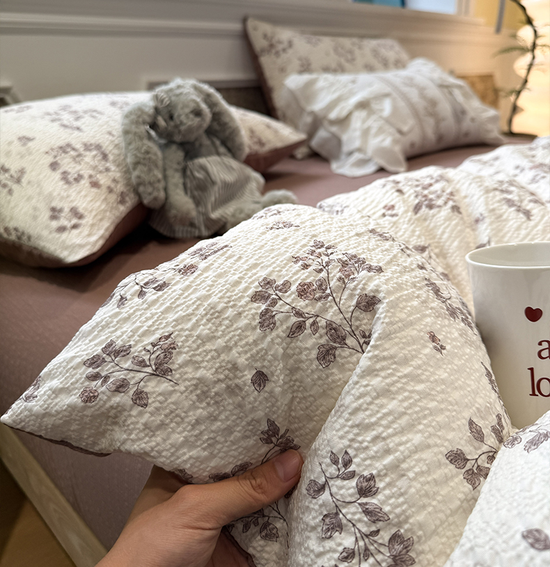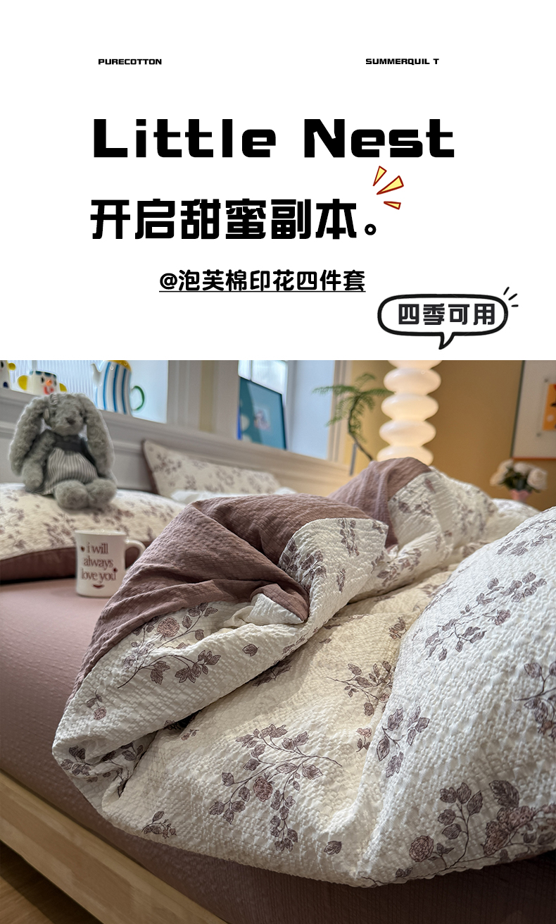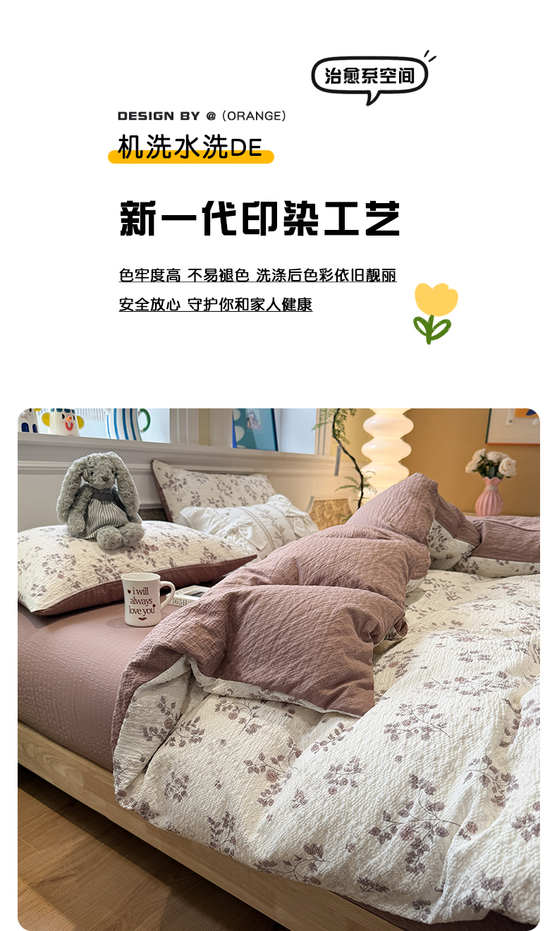 (总)水墨江南 2025新款小清新水洗棉印花四件套,豆蔻,格调,格子小狗,格子樱桃,海盐波点,花季,花田-粉,花田-蓝,假日小熊,山茶花,芋泥波点,紫色蝴蝶结