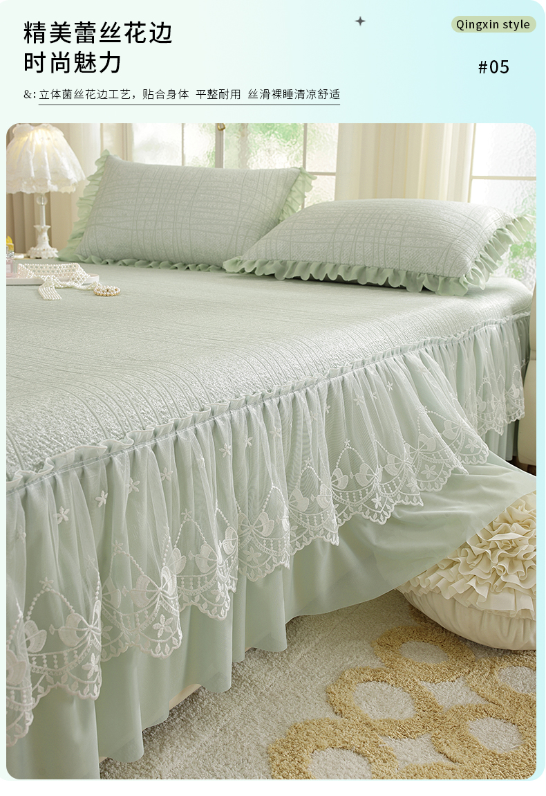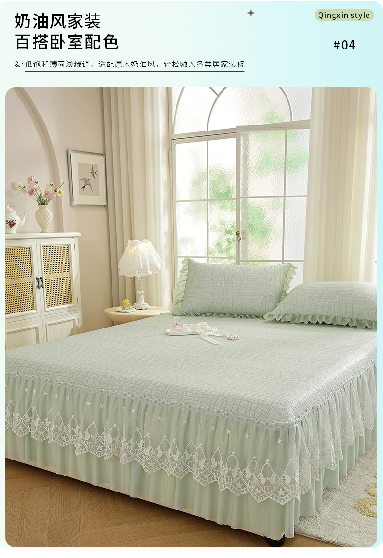 (总)共鸣沙发垫 2026新款冰豆豆素雅床裙系列,素雅蓝色,素雅粉色,素雅灰色,素雅绿色,素雅米黄