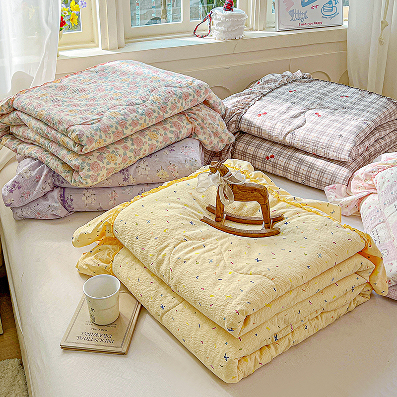 (总)一比一家纺 2026新款彩色花边木棉皱皱纱夏被四件套,阿吉豆,初心粉,初心蓝,扶摇,赫本,花间女孩,花漫漫,阑珊,罗卡,奶芙喵,甜心格格,午后花园,小马驹,邂逅,野餐兔,樱花季,悠然,紫烟