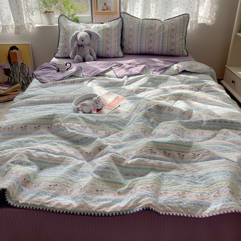 (总)梵希雅 2026新款A类贝壳秀费尔岛风泡芙棉夏被空调被四件套,红棕萌犬-夏被,焦糖木马-夏被,甜粉摇马-夏被,雾蓝自由马-夏被,棕蓝麋鹿-夏被