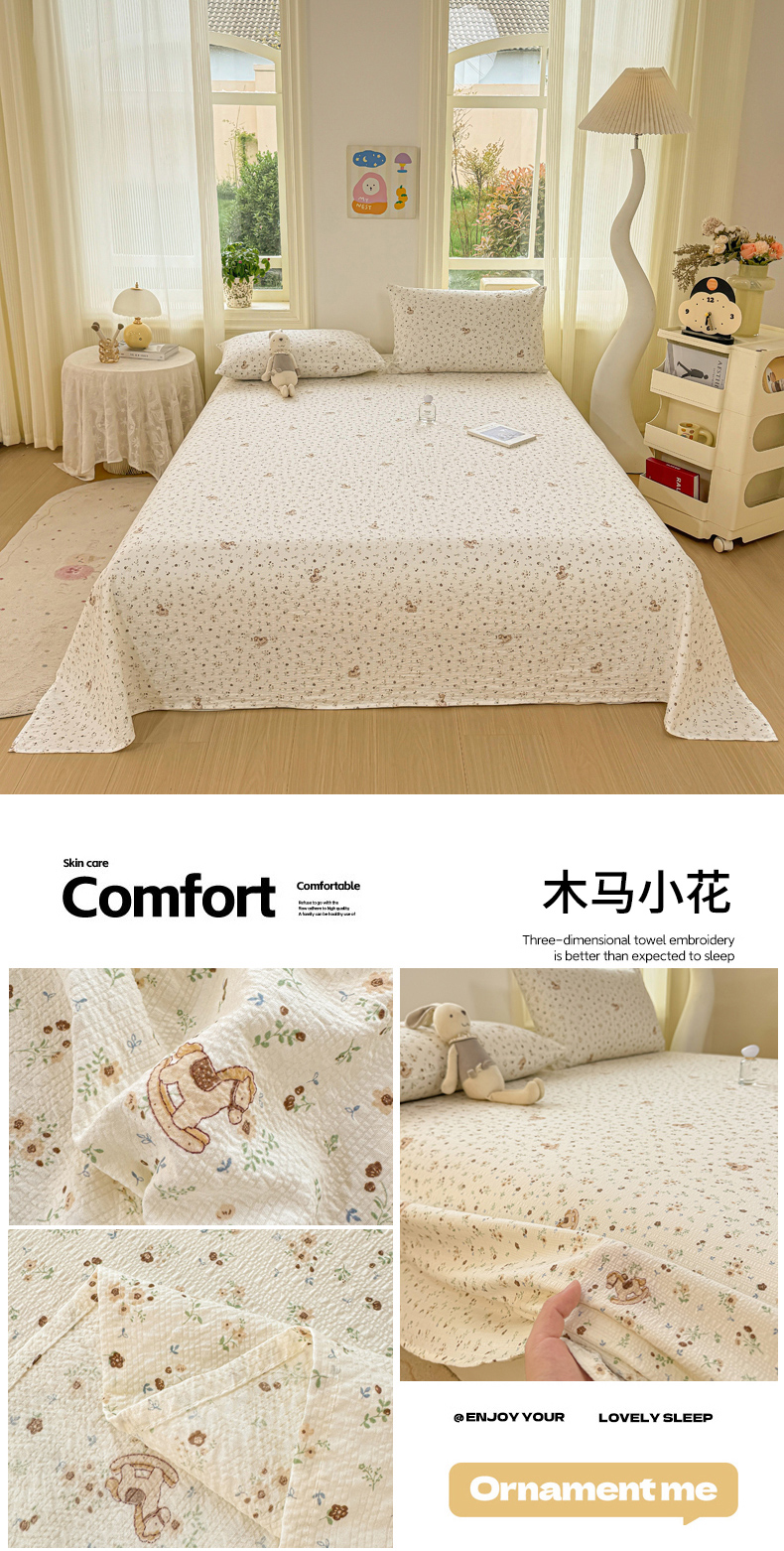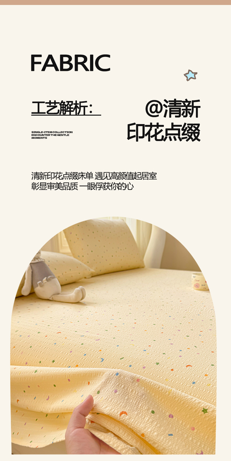 (总)梵朴 2026新款A类泡芙棉云感木棉邹邹纱双层纱床笠三件套,豹纹泡芙狗,花从小兔,花季紫,蝴蝶结小兔,酒渍櫻桃,春日花语,璀璨星空,费尔岛木马,快乐马里奥,快乐小狗,蓝调爱心,蓝色领结狗,猫咪蓝,萌宠,木马小花,暖檣枝,泡芙KT-绿,泡芙KT-紫,甜品萌狗,星星玩偶黄,星星玩偶紫,紫花免