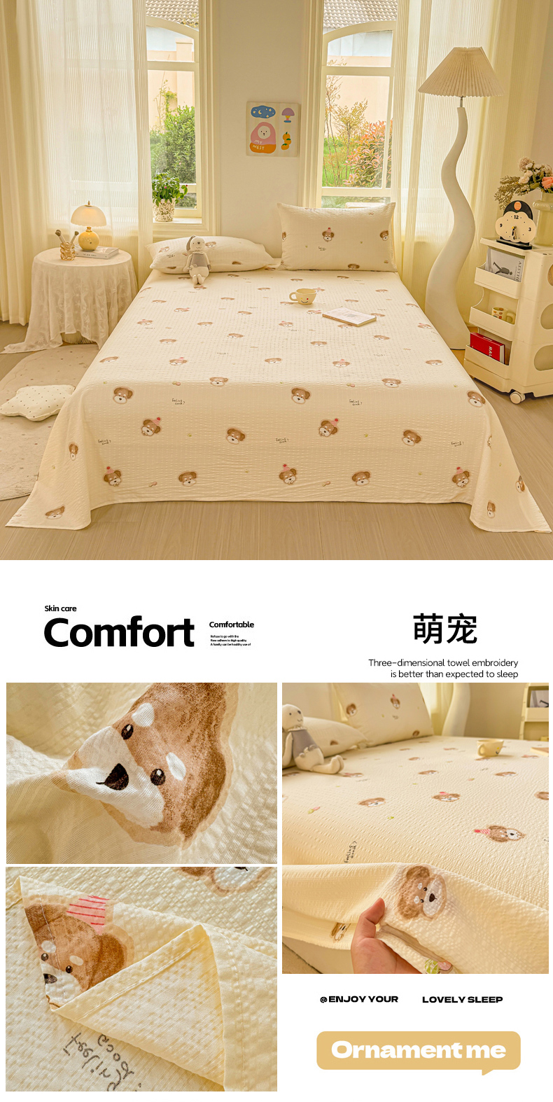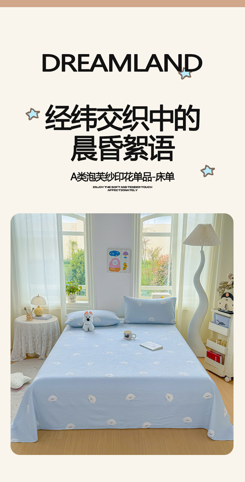 当前位置: 91家纺网 > 商品网购 > 床上用品 > 床单 > 梵朴 2026新款A类泡芙纱云感邹邹纱双层纱单床单 蓝色领结狗