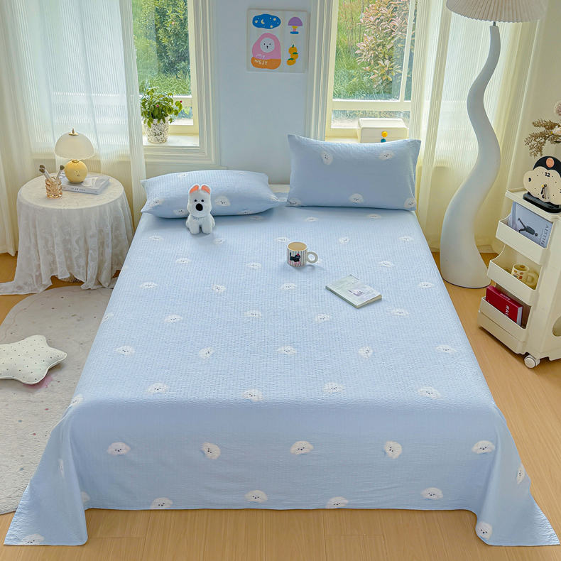 梵朴 2026新款A类泡芙纱云感邹邹纱双层纱单床单 蓝色领结狗