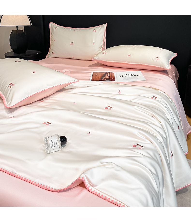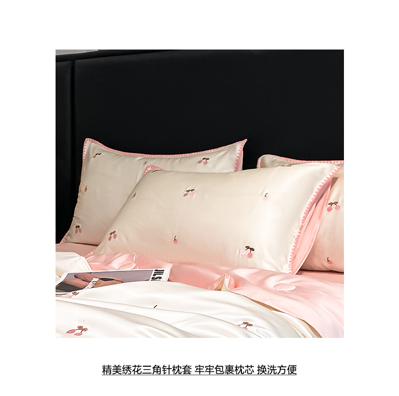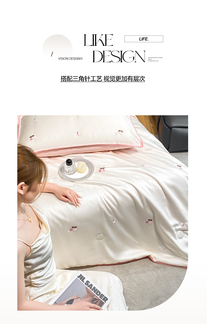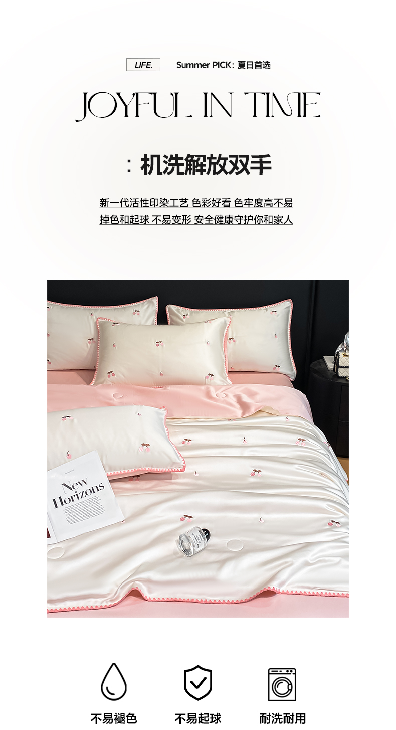 如一 2026新款水洗冰丝刺绣三角针工艺夏被四件套 甜荔枝-白粉