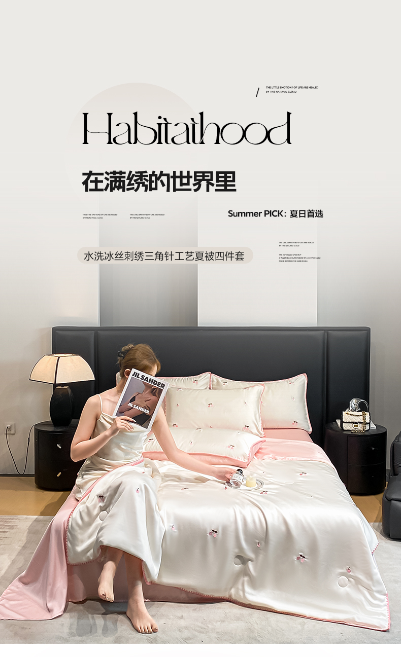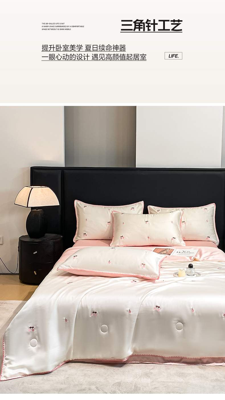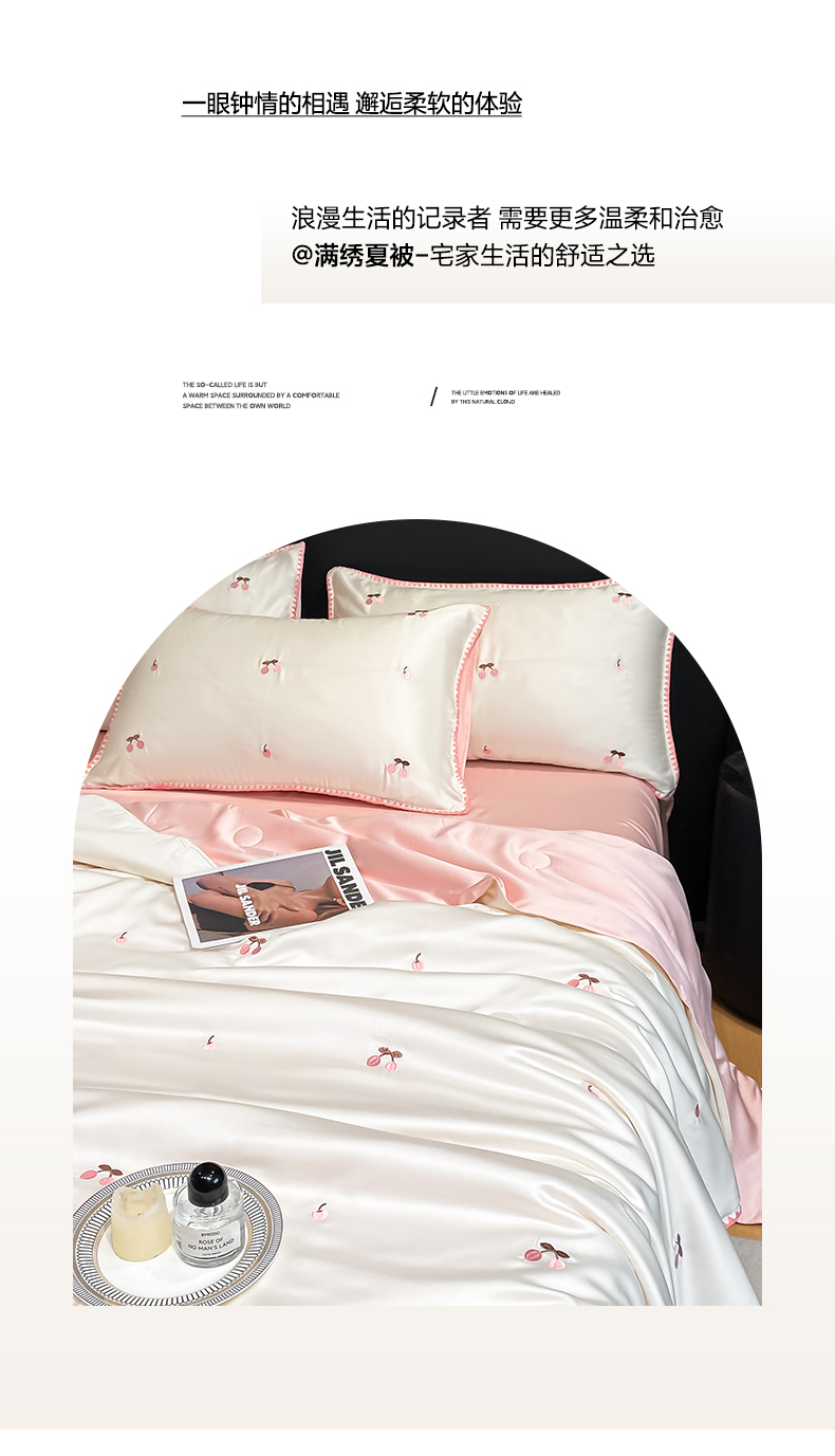 • 91家纺网 家纺一手货源 找家纺 如一 2026新款水洗冰丝刺绣三角针工艺夏被四件套 甜荔枝-白粉