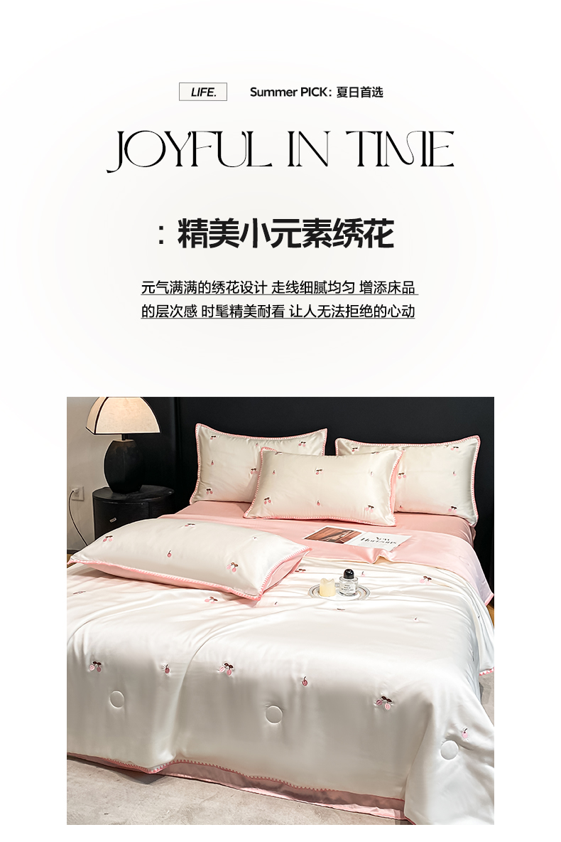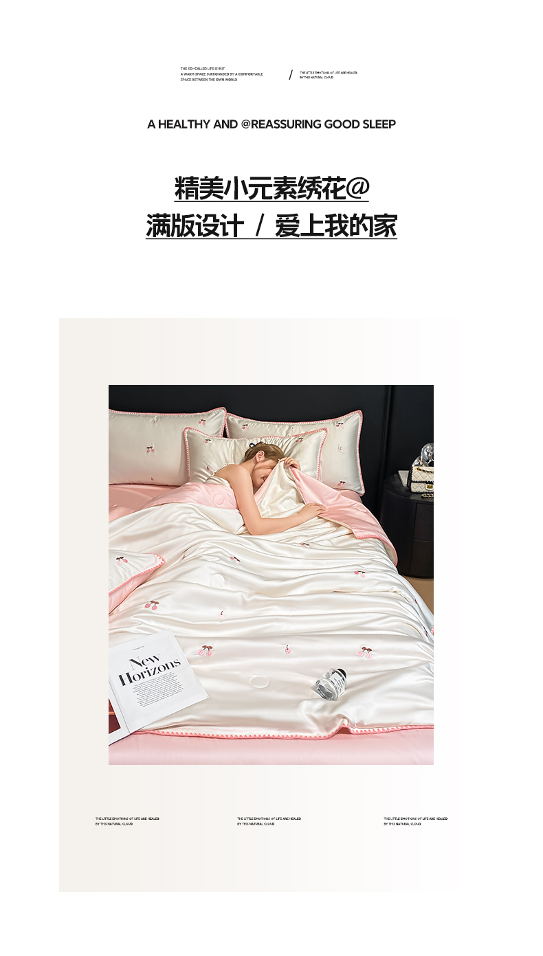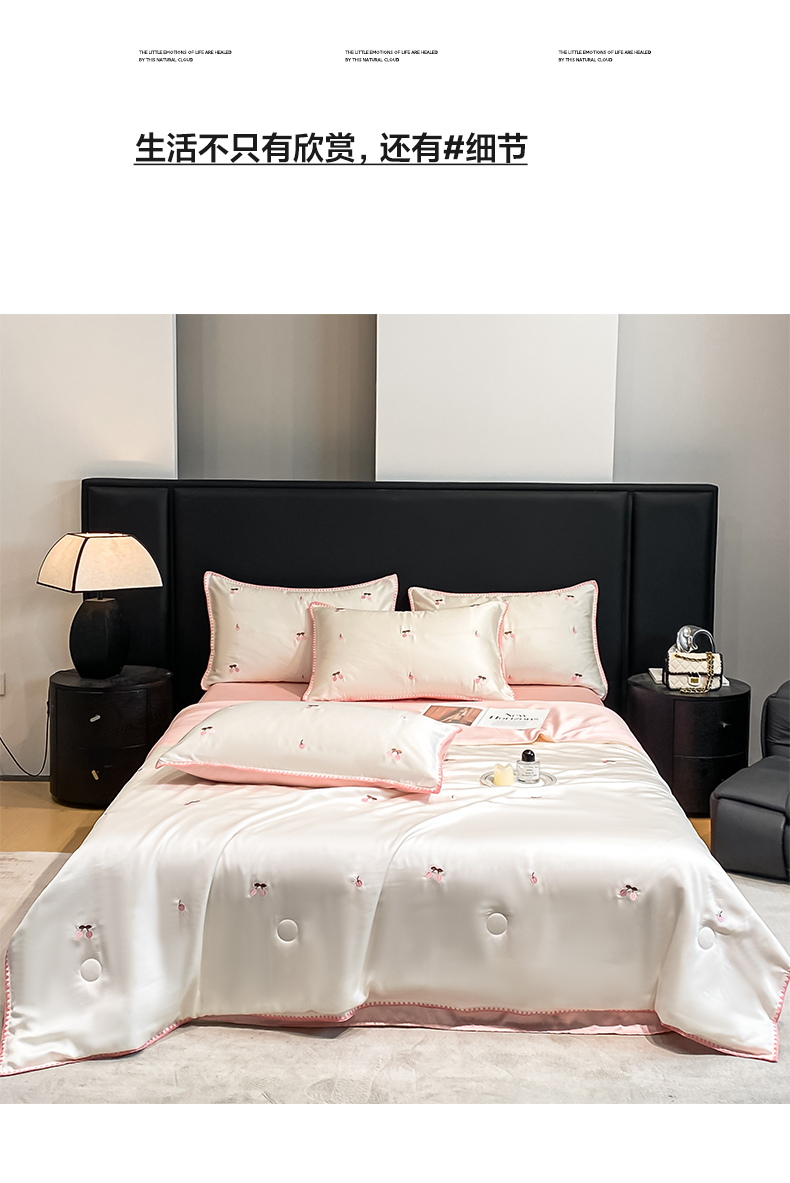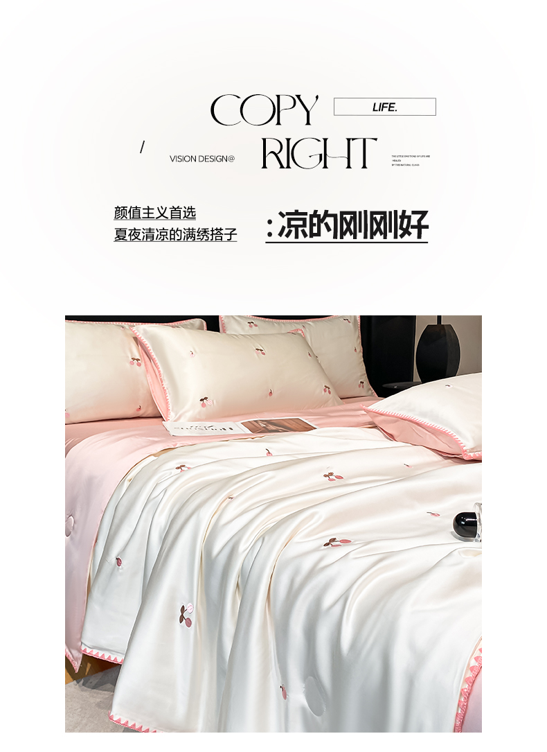 • 91家纺网 家纺一手货源 找家纺 如一 2026新款水洗冰丝刺绣三角针工艺夏被四件套 甜荔枝-白粉