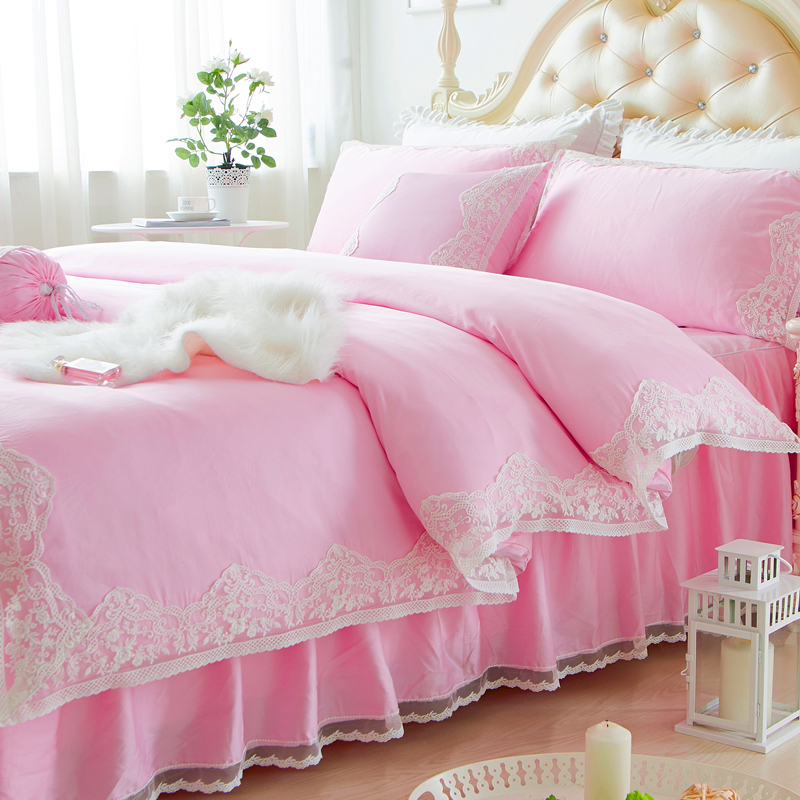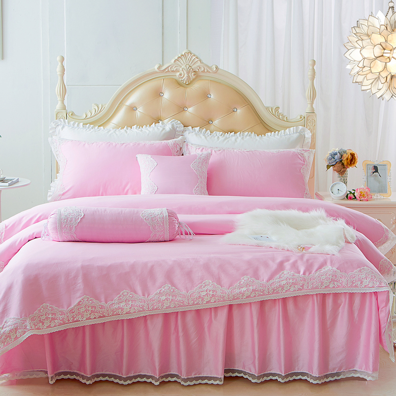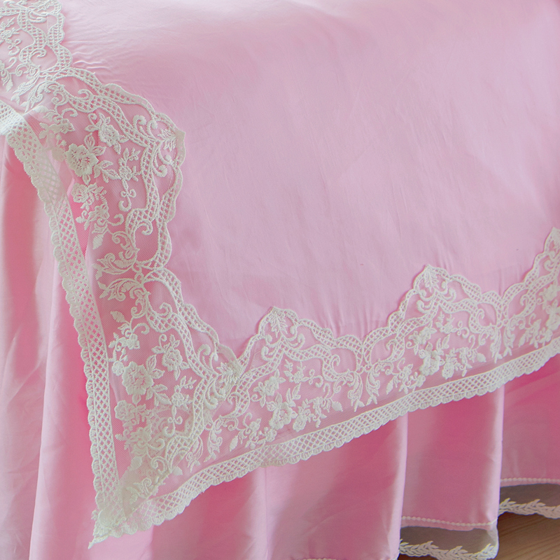 商品名称:菊上家纺 60S贡缎全棉纯色蕾丝床裙四件套 轻奢风粉黛佳人