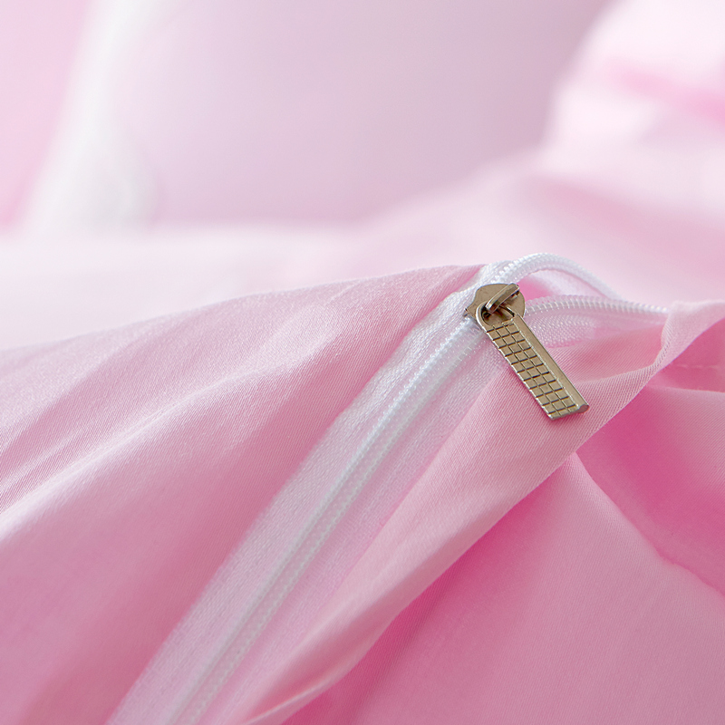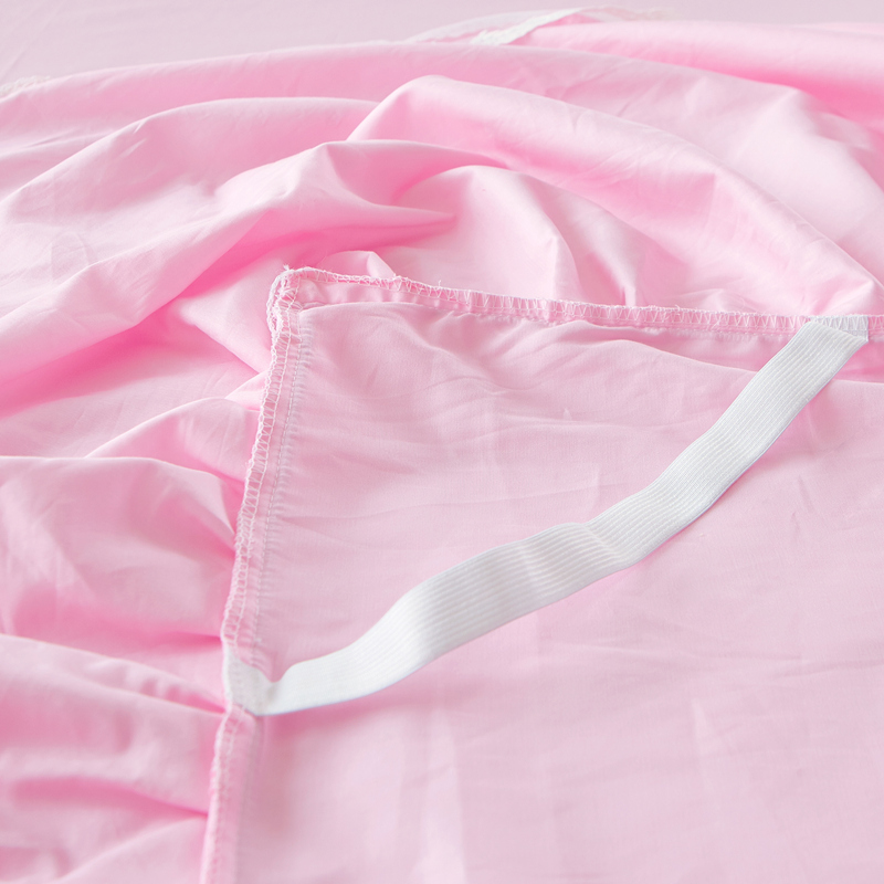 菊上家纺 60S贡缎全棉纯色蕾丝床裙四件套 轻奢风粉黛佳人