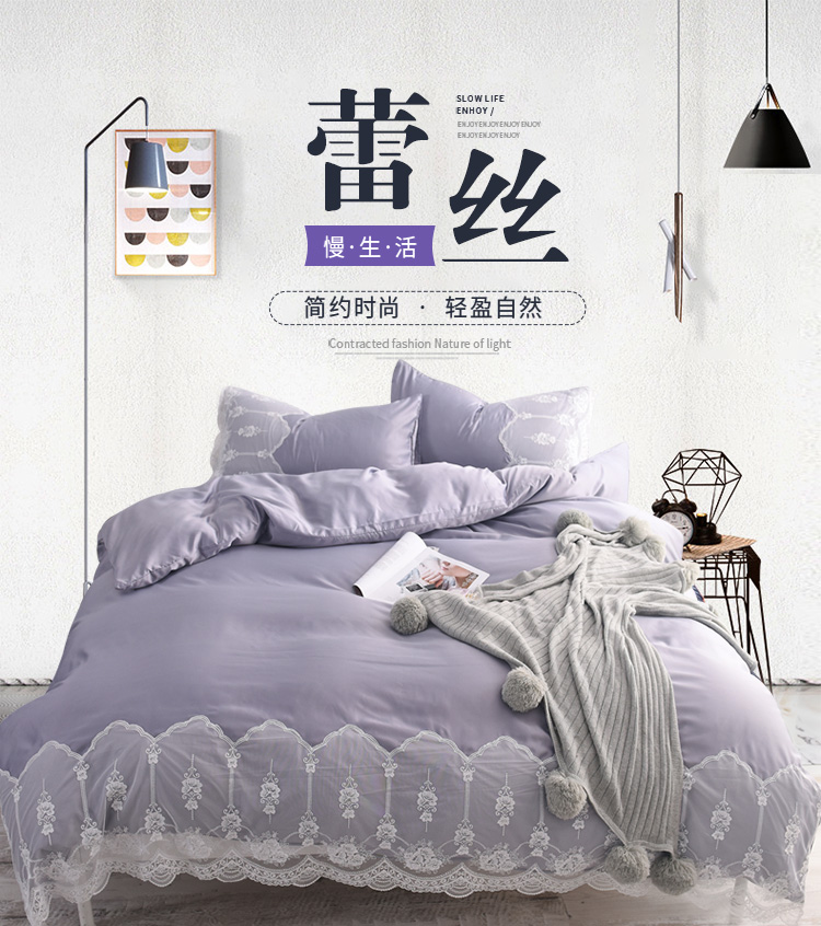 艾米家居 2025新款韩版双层花边轻奢浮雕系列水洗冰丝四件套 豆沙花边,豆沙花边