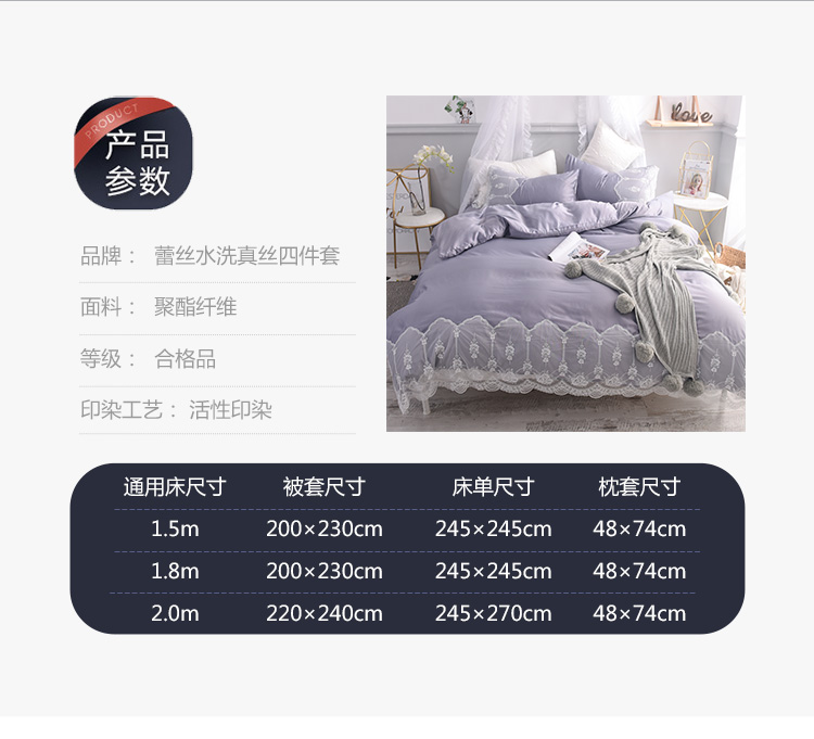 商品名称:艾米家居 水洗真丝四件套纯真系列 蓝灰色