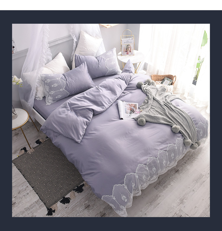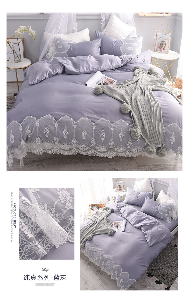 艾米家居 水洗真丝四件套纯真系列 蓝灰色