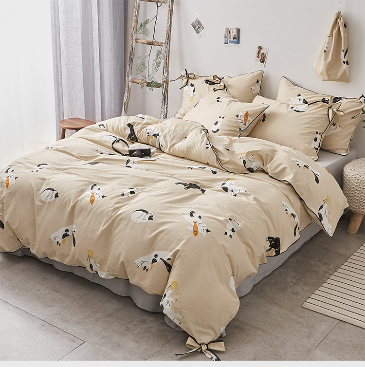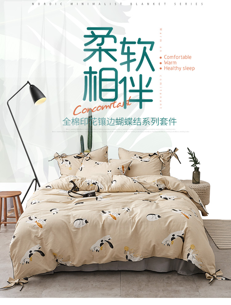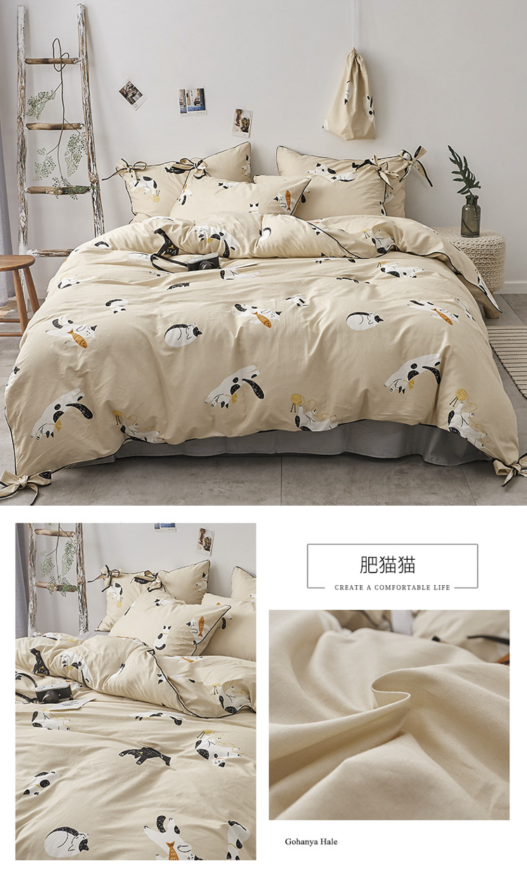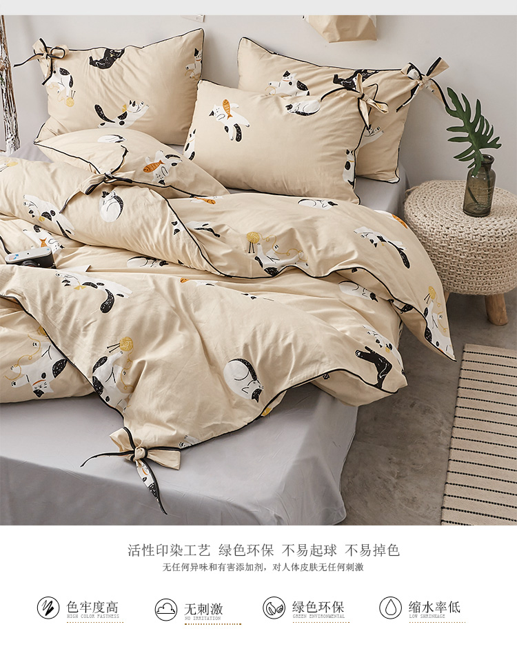 商品名称:棉眠 2019春夏新款全棉镶边蝴蝶结四件套 床单款 肥猫猫