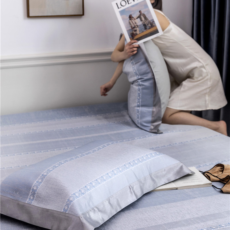 时年家纺 2019新款凉席冰丝席冰露丝床笠款 马赛条纹-蓝