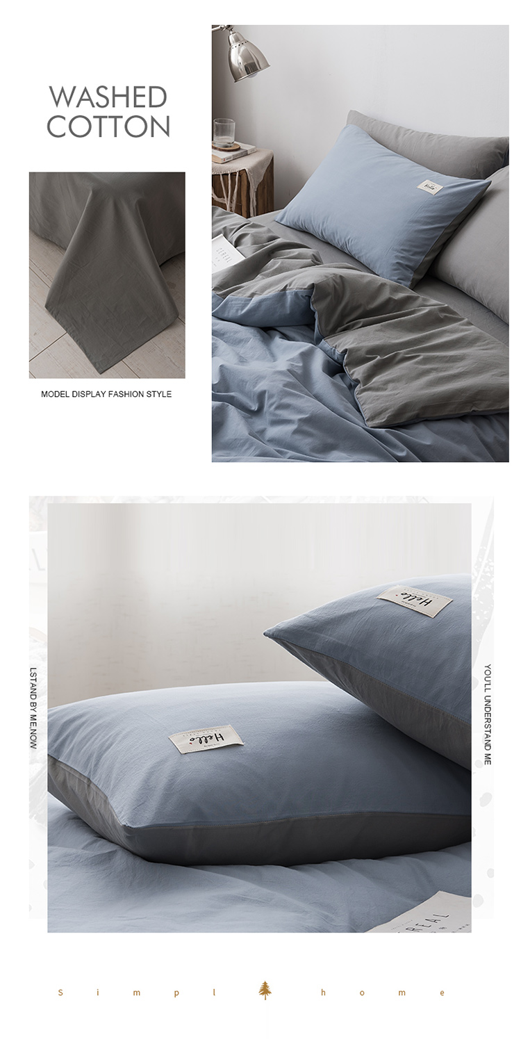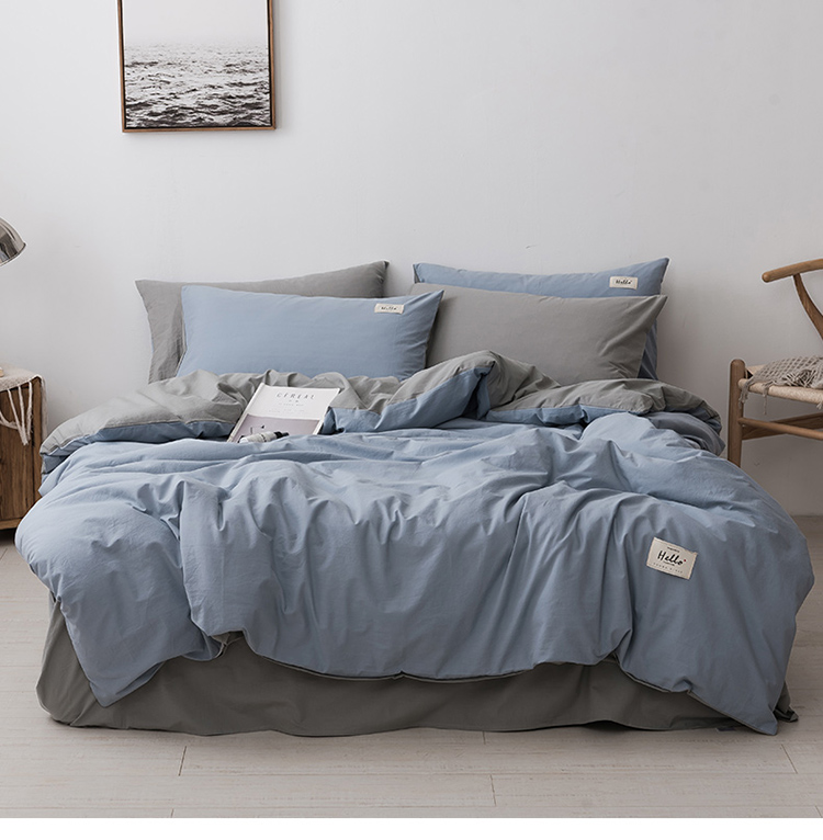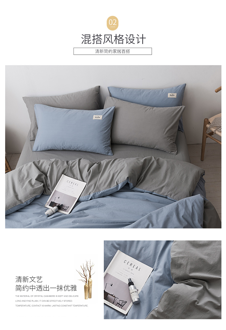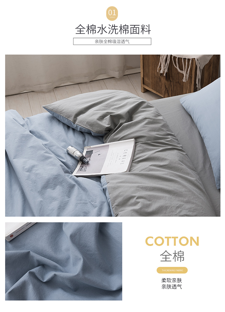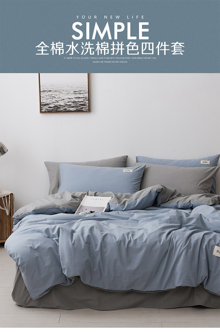 朗莎家纺 2019新款水洗棉四件套床单款 天蓝