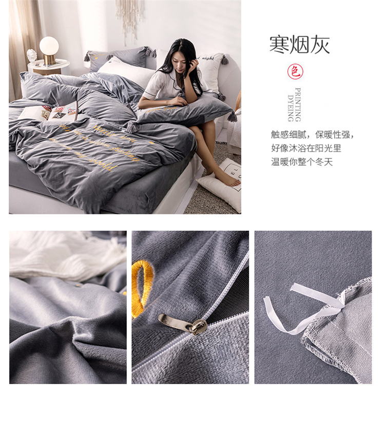 商品名称:北纬27度 2019新款流苏刺绣加厚宝宝绒四件套 寒烟灰